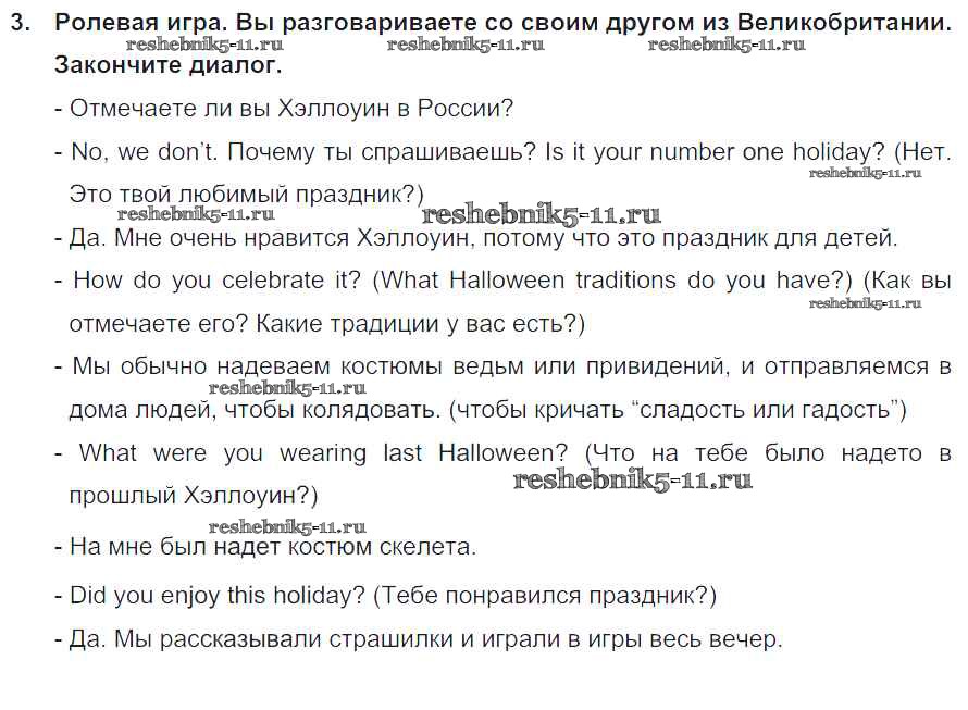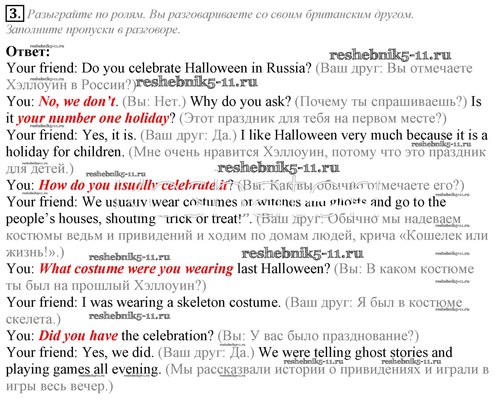 Готовая домашняя работа с ответами по Английскому языку за 5 класс Кузовлев, Лапа, Костина, Дуванова, Кузнецова Учебник УМК Просвещение 2015 ФГОС - Lesson 5. Is it your number one holiday? 3