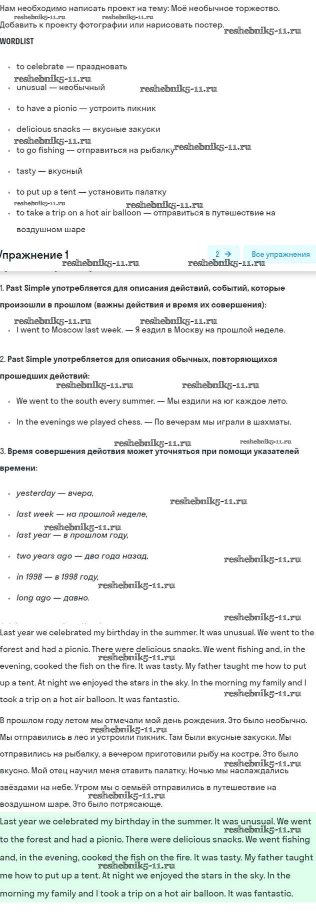 Готовая домашняя работа с ответами по Английскому языку за 5 класс Кузовлев, Лапа, Костина, Дуванова, Кузнецова Учебник УМК Просвещение 2015 ФГОС - Lesson 6. Celebrations that I remember 1