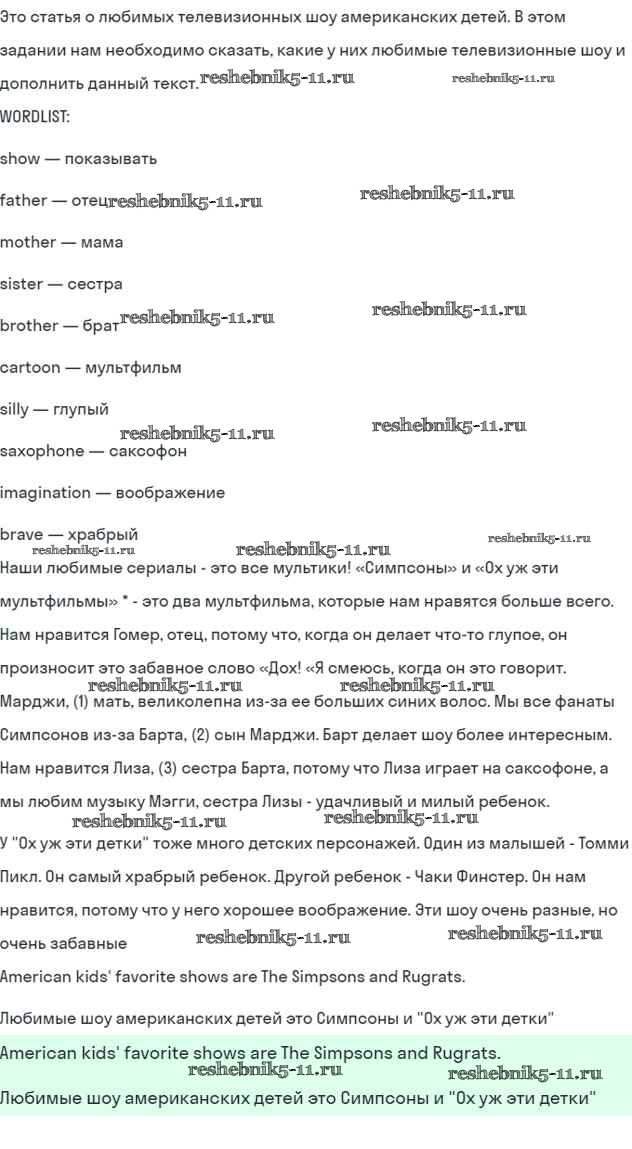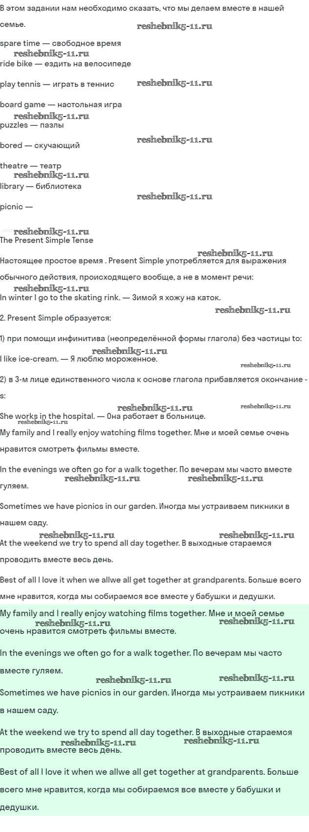 Готовая домашняя работа с ответами по Английскому языку за 5 класс Кузовлев, Лапа, Костина, Дуванова, Кузнецова Учебник УМК Просвещение 2015 ФГОС - Lesson 2. What do you do in your spare time? 6