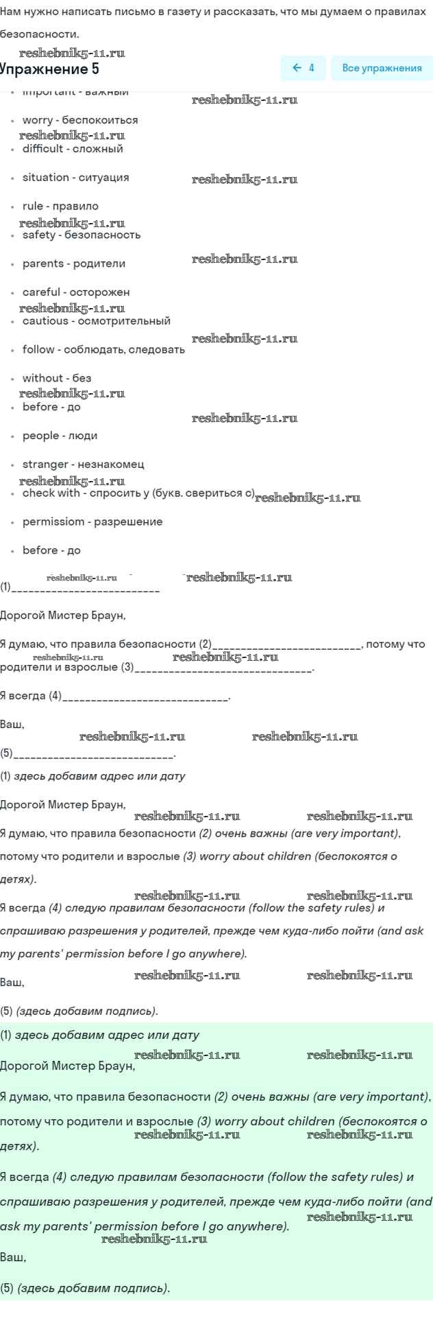 Готовая домашняя работа с ответами по Английскому языку за 5 класс Кузовлев, Лапа, Костина, Дуванова, Кузнецова Учебник УМК Просвещение 2015 ФГОС - Lesson 1. Why do we all follow the rules? 5