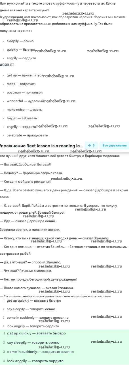 Английский язык за 5 класс Кузовлев Учебник УМК Просвещение reading lesson 3