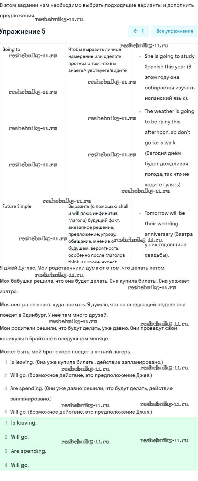 Готовая домашняя работа с ответами по Английскому языку за 5 класс Кузовлев, Лапа, Костина, Дуванова, Кузнецова Учебник УМК Просвещение 2015 ФГОС - Lesson 4. Have you got any plans? 5