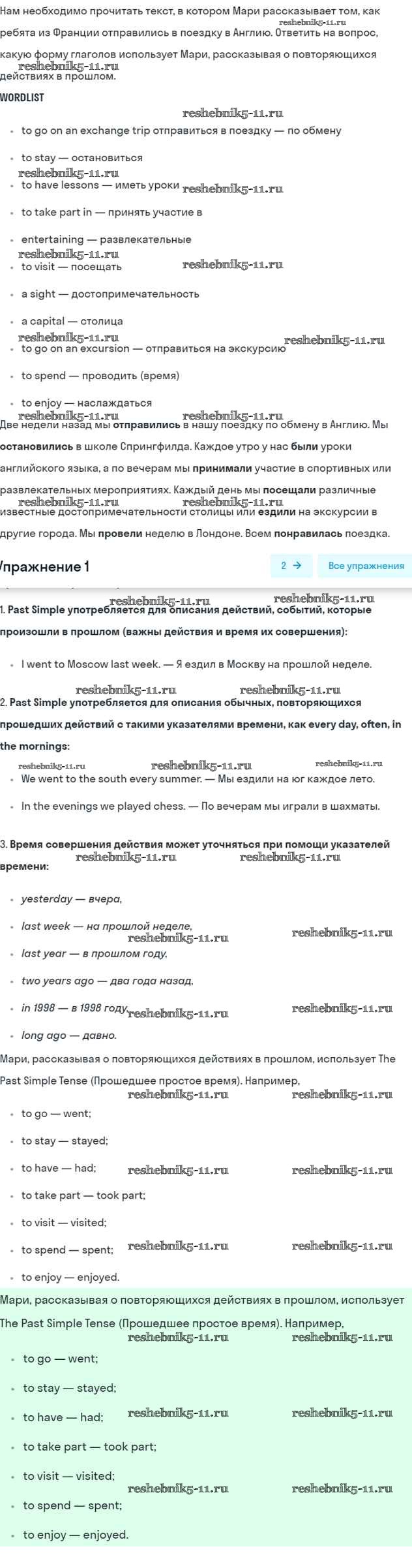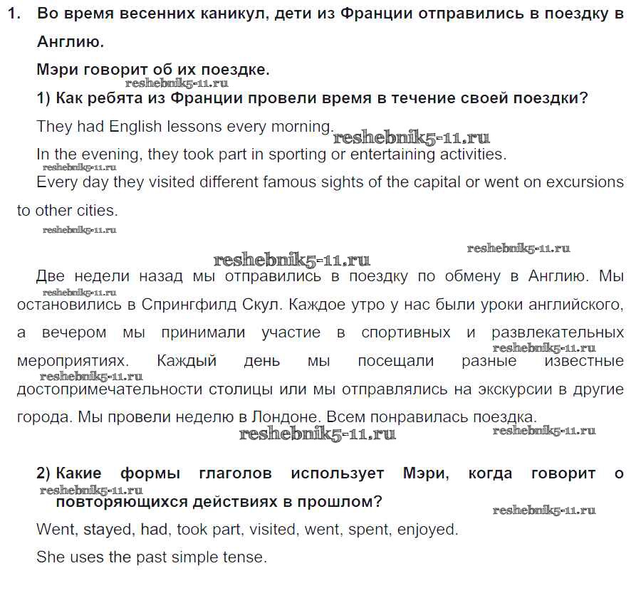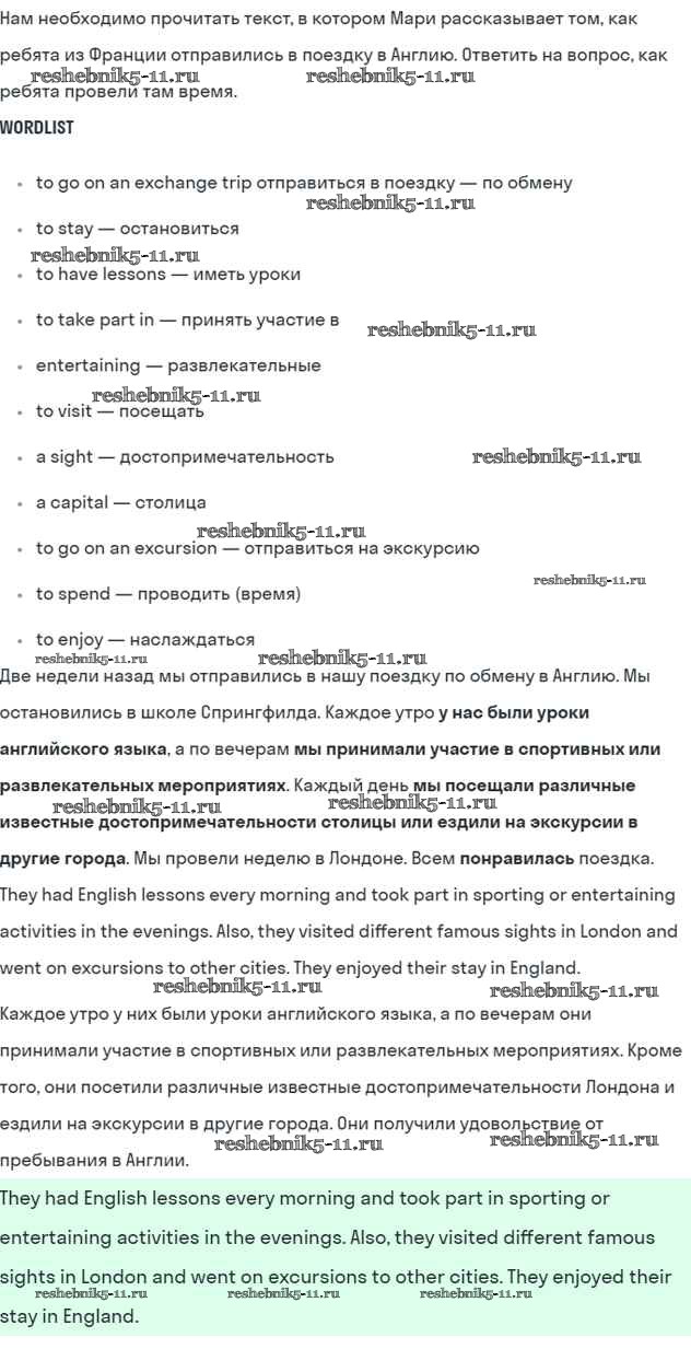 Готовая домашняя работа с ответами по Английскому языку за 5 класс Кузовлев, Лапа, Костина, Дуванова, Кузнецова Учебник УМК Просвещение 2015 ФГОС - Lesson 1. We had a nice time in London 1