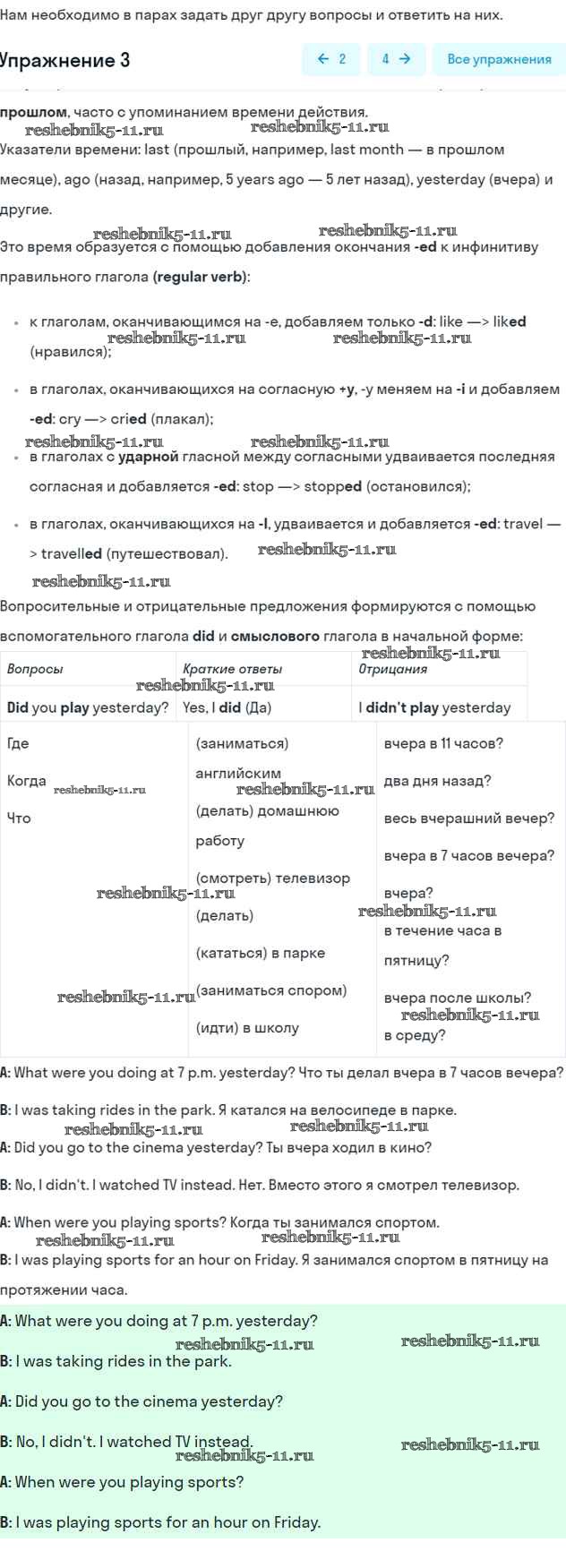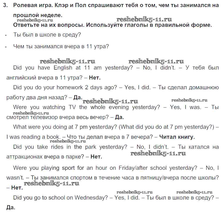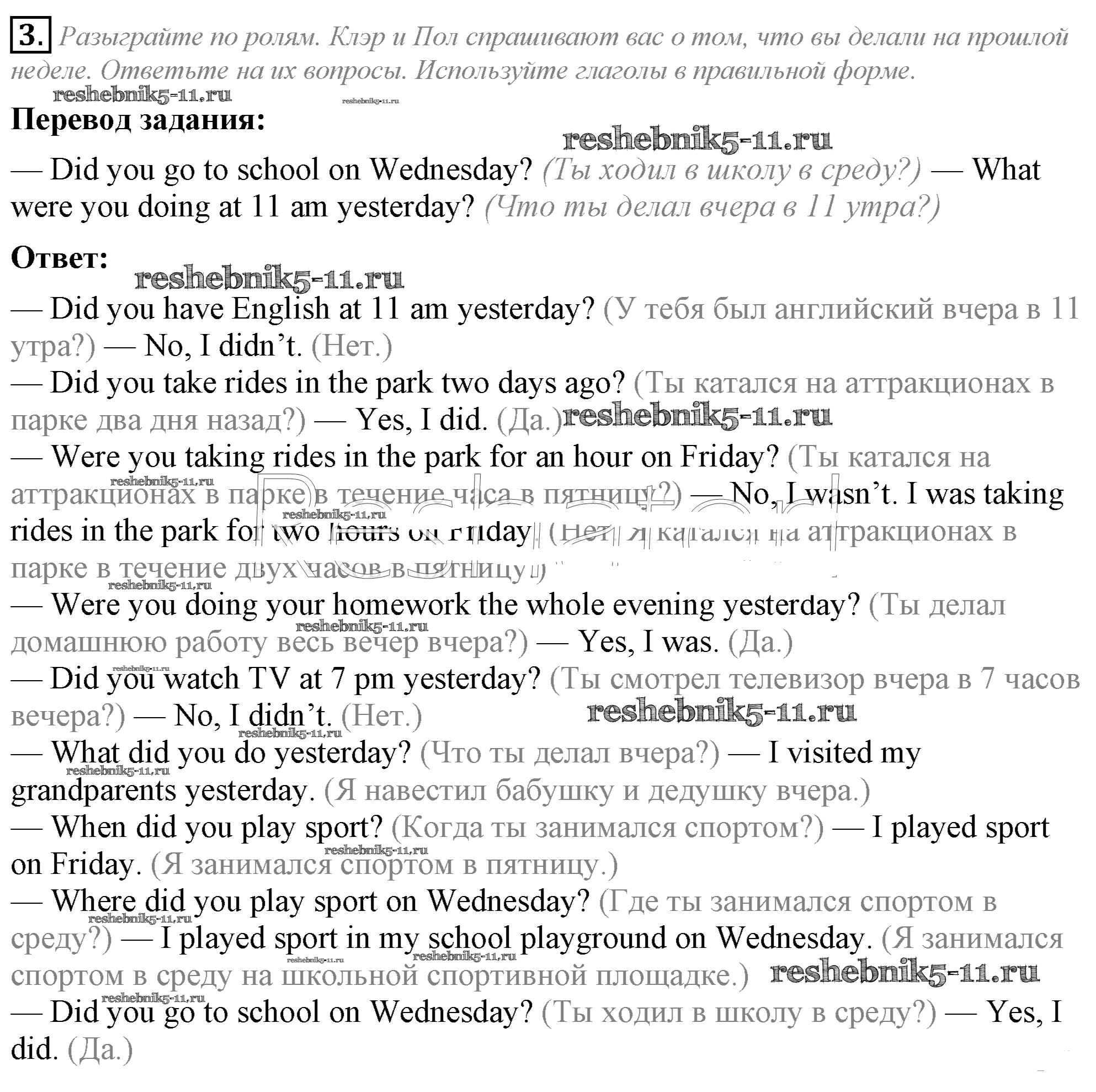 Готовая домашняя работа с ответами по Английскому языку за 5 класс Кузовлев, Лапа, Костина, Дуванова, Кузнецова Учебник УМК Просвещение 2015 ФГОС - Lesson 2. What were you doing the whole day yesterday? 3