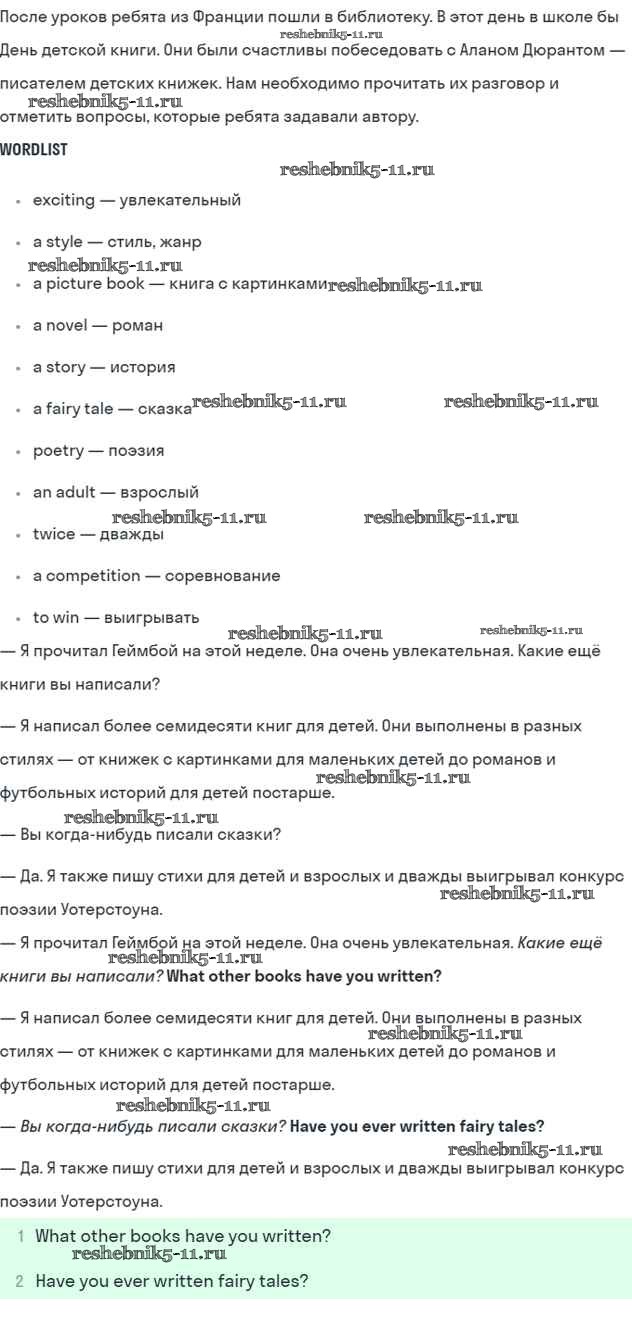 Готовая домашняя работа с ответами по Английскому языку за 5 класс Кузовлев, Лапа, Костина, Дуванова, Кузнецова Учебник УМК Просвещение 2015 ФГОС - Lesson 3. Have you ever…? 1
