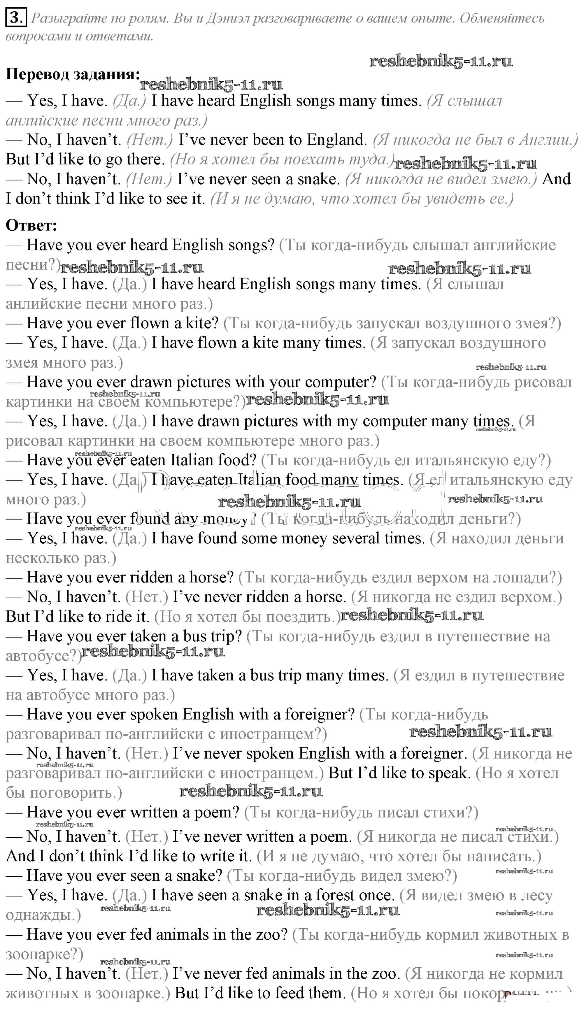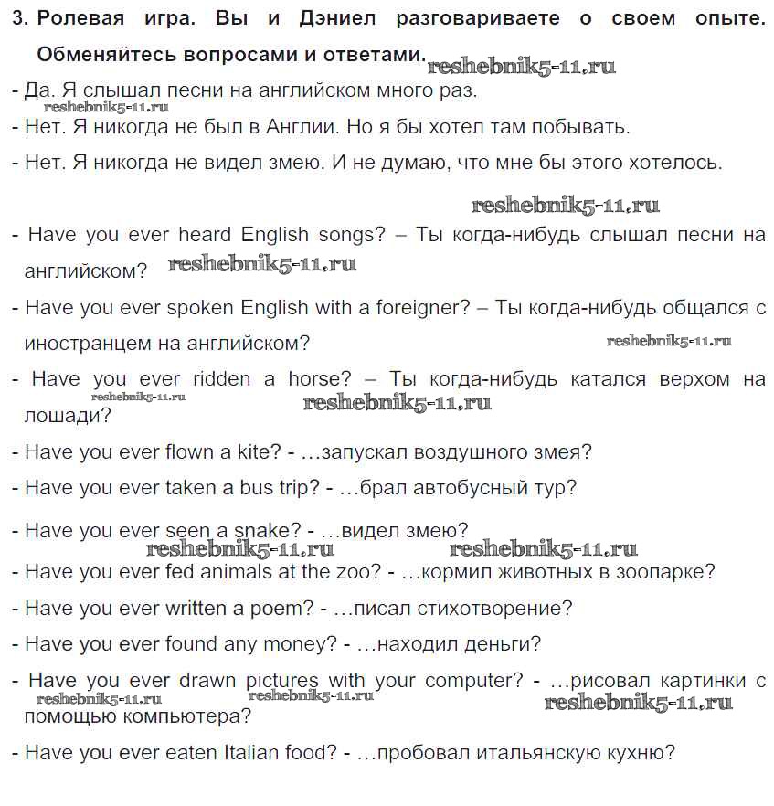 Готовая домашняя работа с ответами по Английскому языку за 5 класс Кузовлев, Лапа, Костина, Дуванова, Кузнецова Учебник УМК Просвещение 2015 ФГОС - Lesson 3. Have you ever…? 3