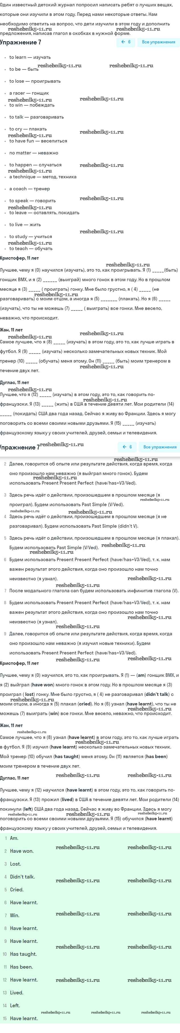 Готовая домашняя работа с ответами по Английскому языку за 5 класс Кузовлев, Лапа, Костина, Дуванова, Кузнецова Учебник УМК Просвещение 2015 ФГОС - Lesson 3. Have you ever…? 7