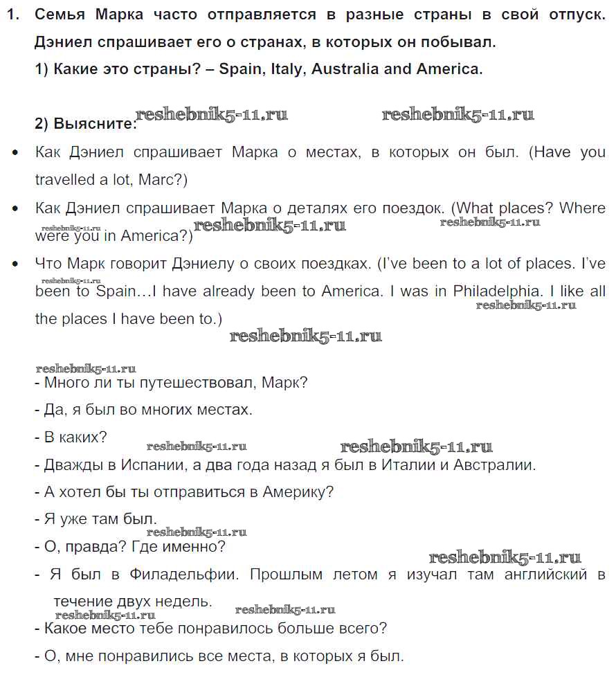 Готовая домашняя работа с ответами по Английскому языку за 5 класс Кузовлев, Лапа, Костина, Дуванова, Кузнецова Учебник УМК Просвещение 2015 ФГОС - Lesson 5. What excursion did you like best? 1