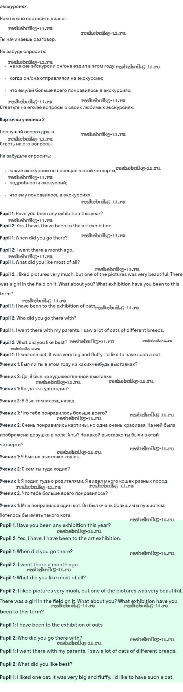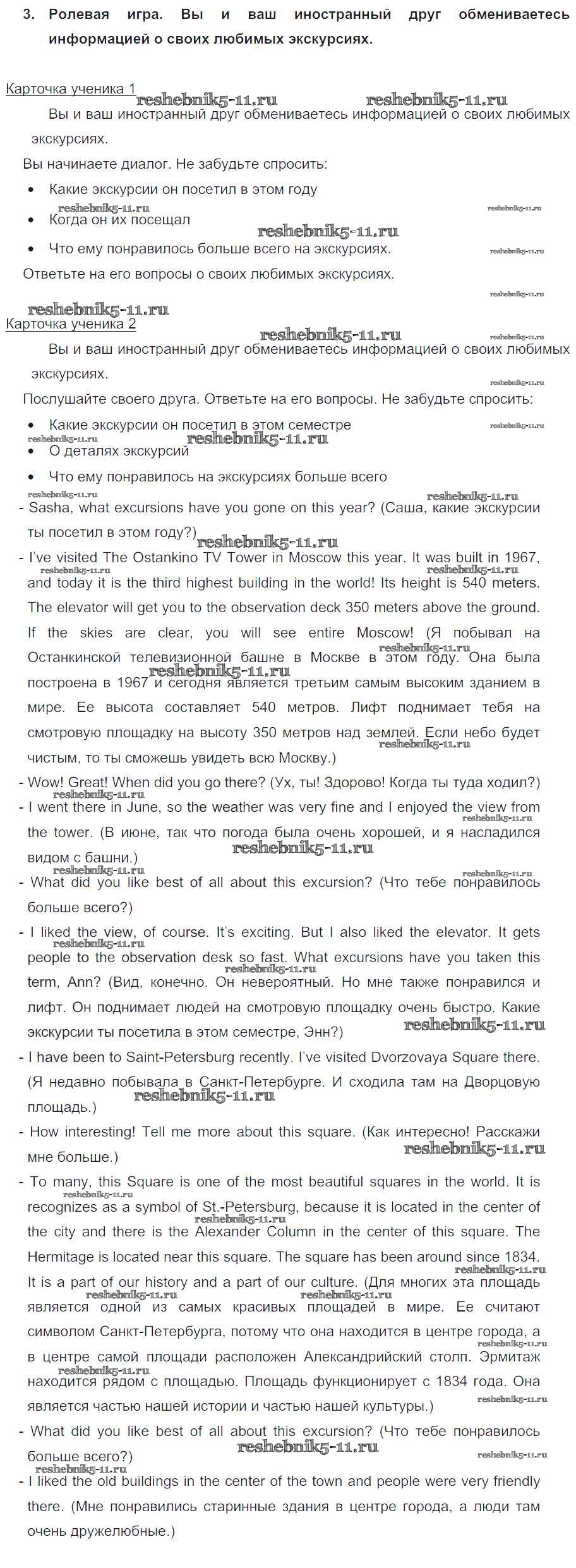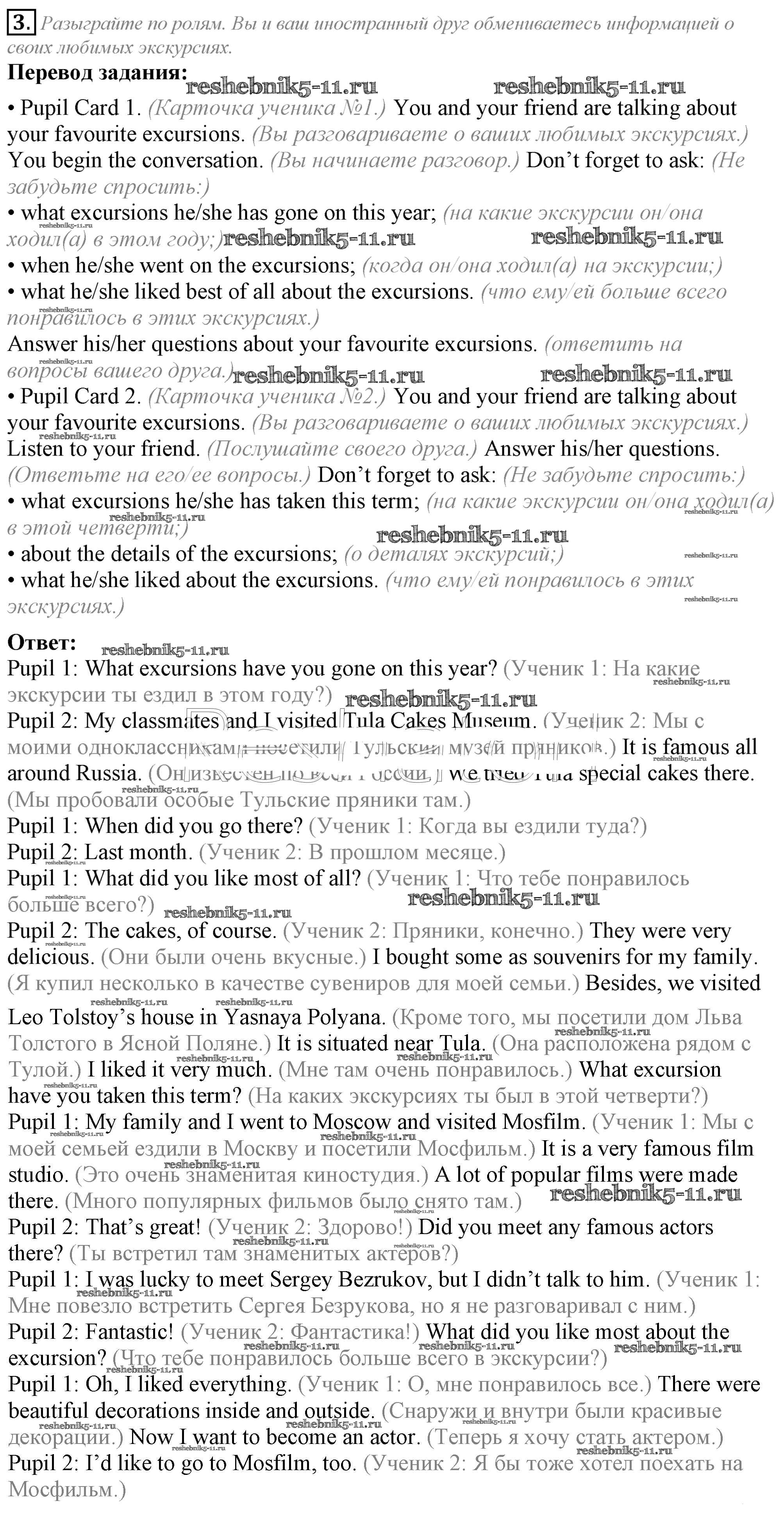 Готовая домашняя работа с ответами по Английскому языку за 5 класс Кузовлев, Лапа, Костина, Дуванова, Кузнецова Учебник УМК Просвещение 2015 ФГОС - Lesson 5. What excursion did you like best? 3