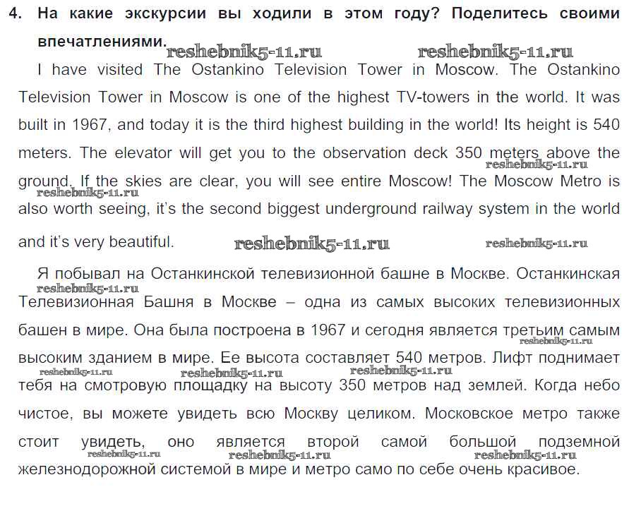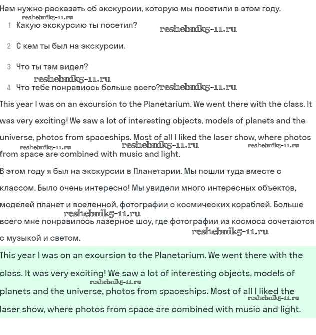 Готовая домашняя работа с ответами по Английскому языку за 5 класс Кузовлев, Лапа, Костина, Дуванова, Кузнецова Учебник УМК Просвещение 2015 ФГОС - Lesson 5. What excursion did you like best? 4