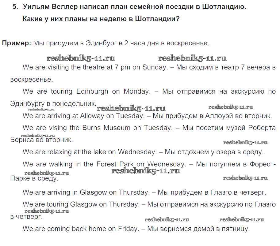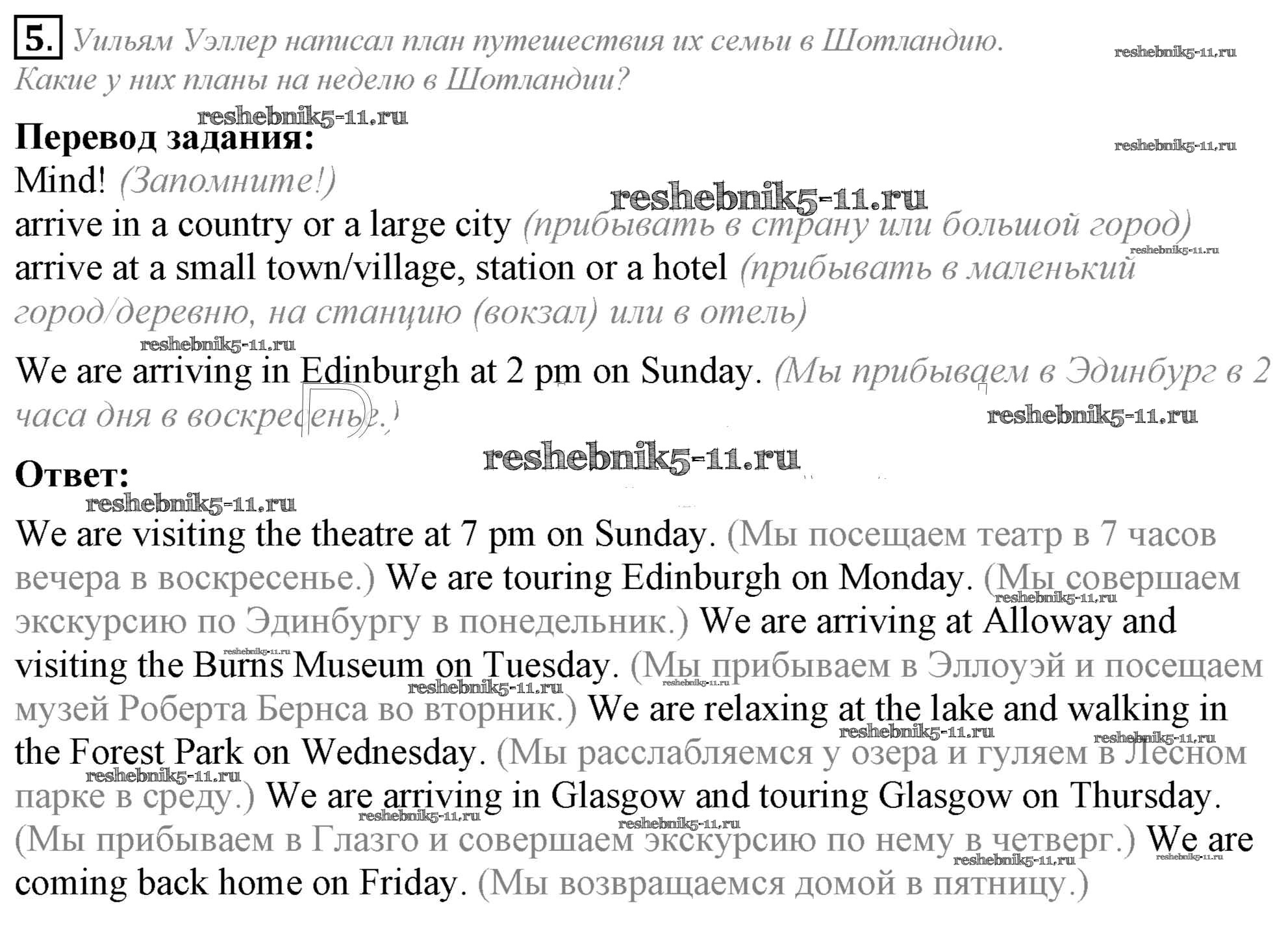 Готовая домашняя работа с ответами по Английскому языку за 5 класс Кузовлев, Лапа, Костина, Дуванова, Кузнецова Учебник УМК Просвещение 2015 ФГОС - Lesson 1. Where are you travelling to? 5