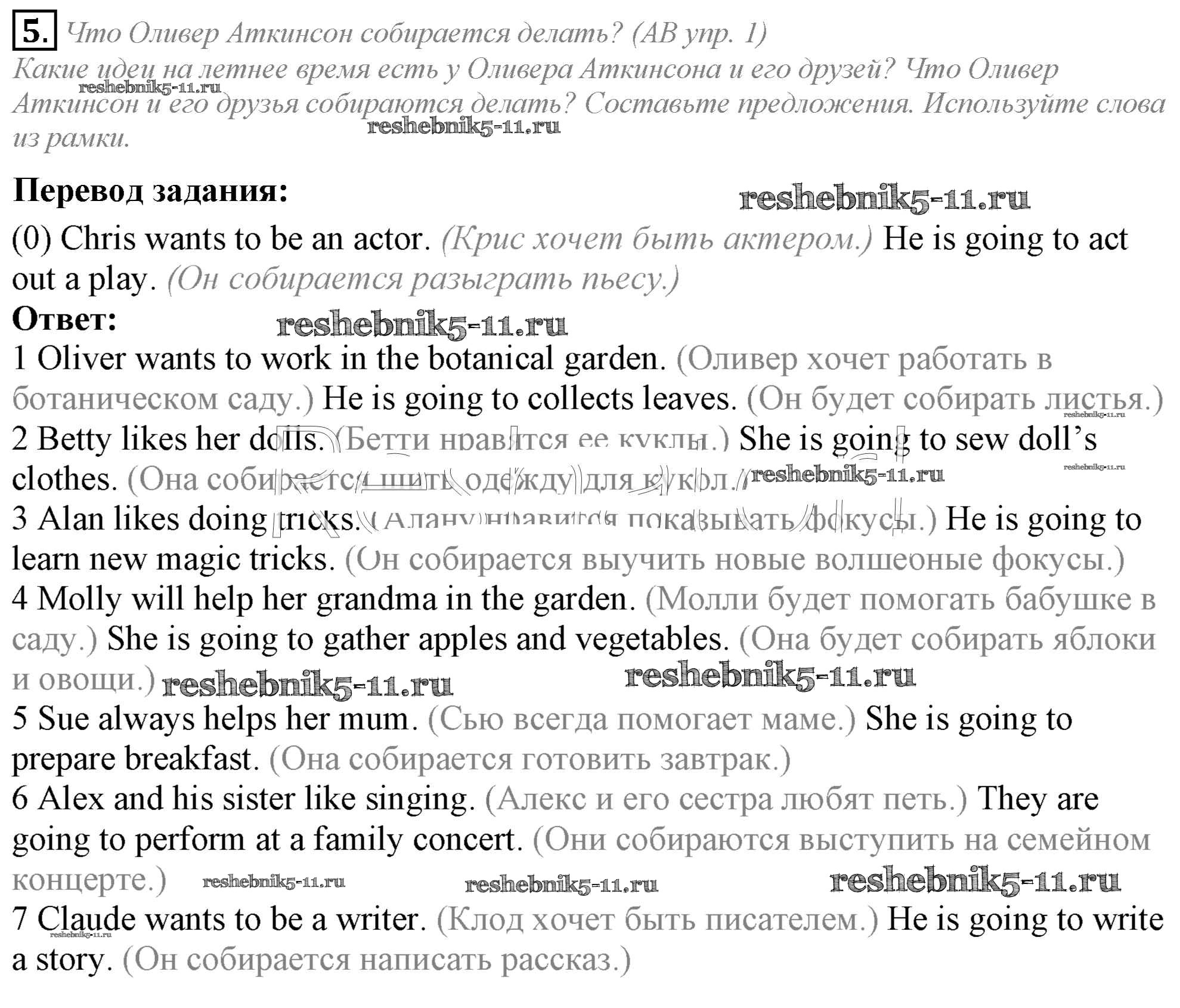 Готовая домашняя работа с ответами по Английскому языку за 5 класс Кузовлев, Лапа, Костина, Дуванова, Кузнецова Учебник УМК Просвещение 2015 ФГОС - Lesson 2. What are you going to do? 5