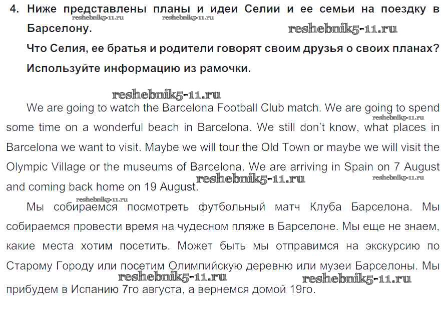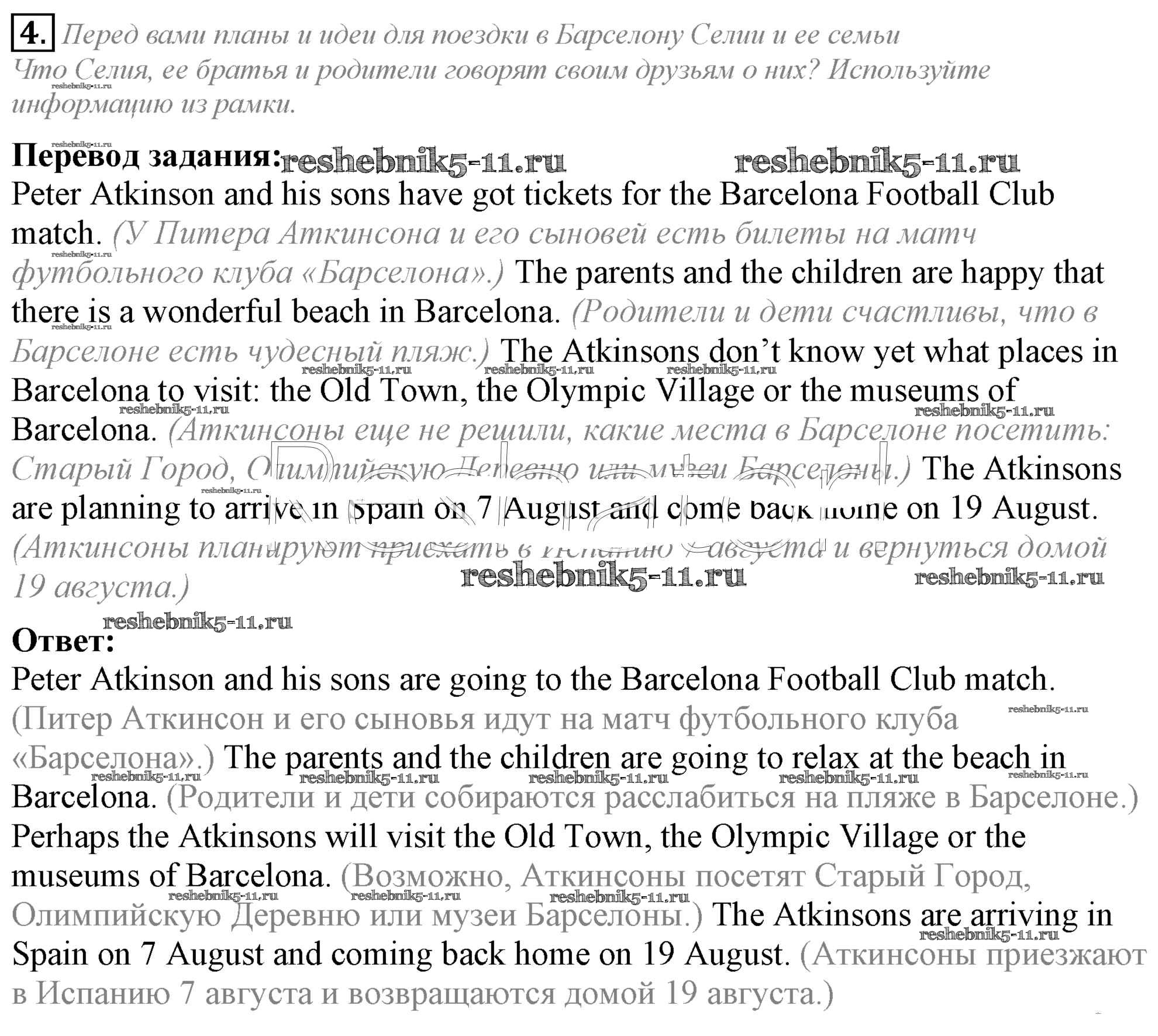Готовая домашняя работа с ответами по Английскому языку за 5 класс Кузовлев, Лапа, Костина, Дуванова, Кузнецова Учебник УМК Просвещение 2015 ФГОС - Lesson 4. Have you got any plans? 4