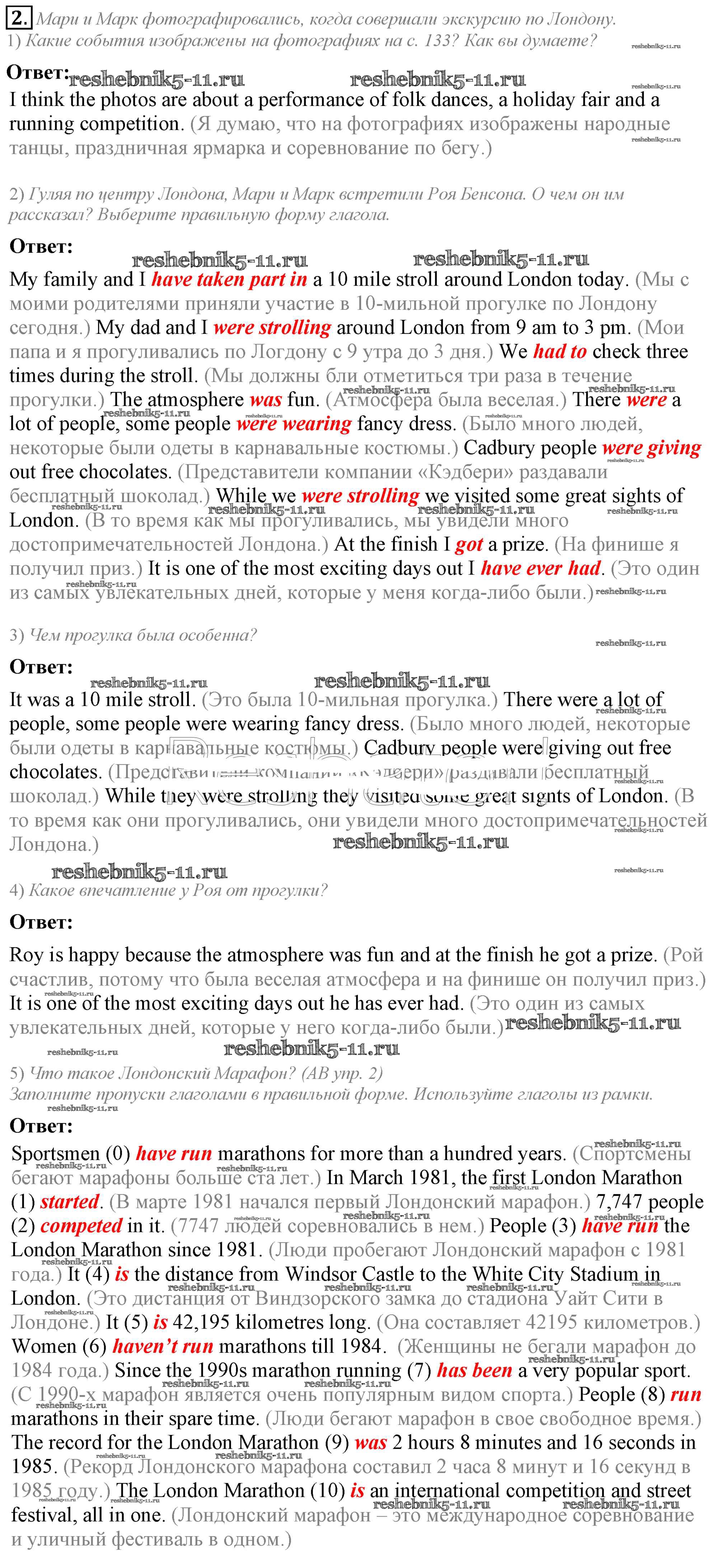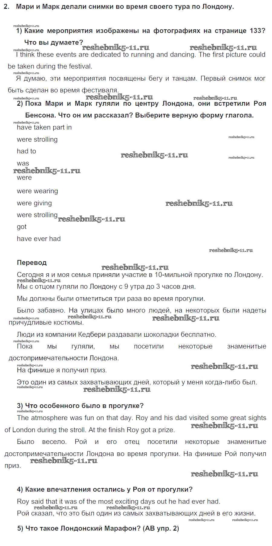 Готовая домашняя работа с ответами по Английскому языку за 5 класс Кузовлев, Лапа, Костина, Дуванова, Кузнецова Учебник УМК Просвещение 2015 ФГОС - Lesson 1. London street events 2