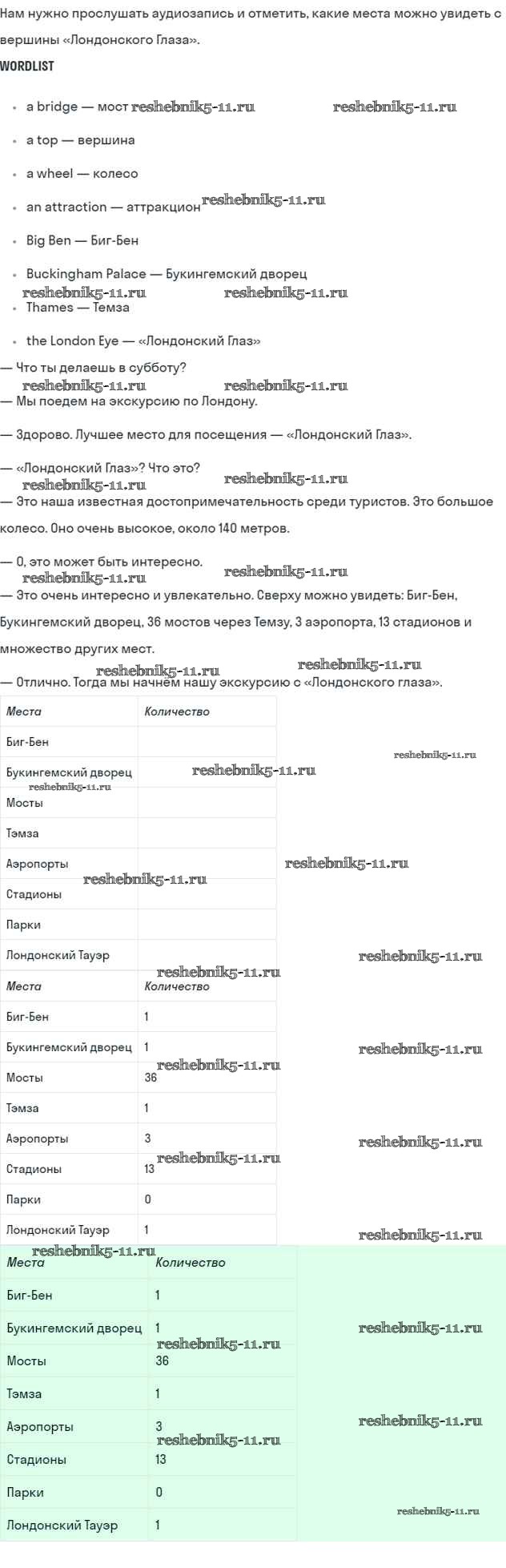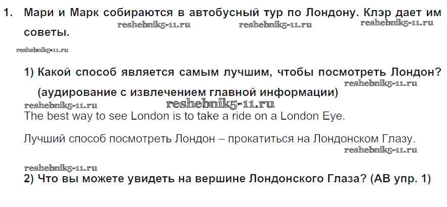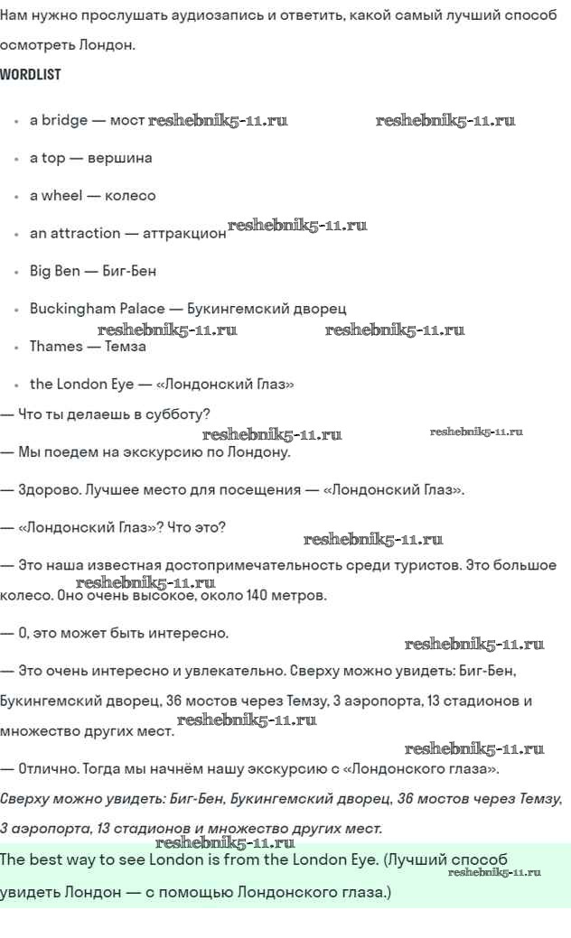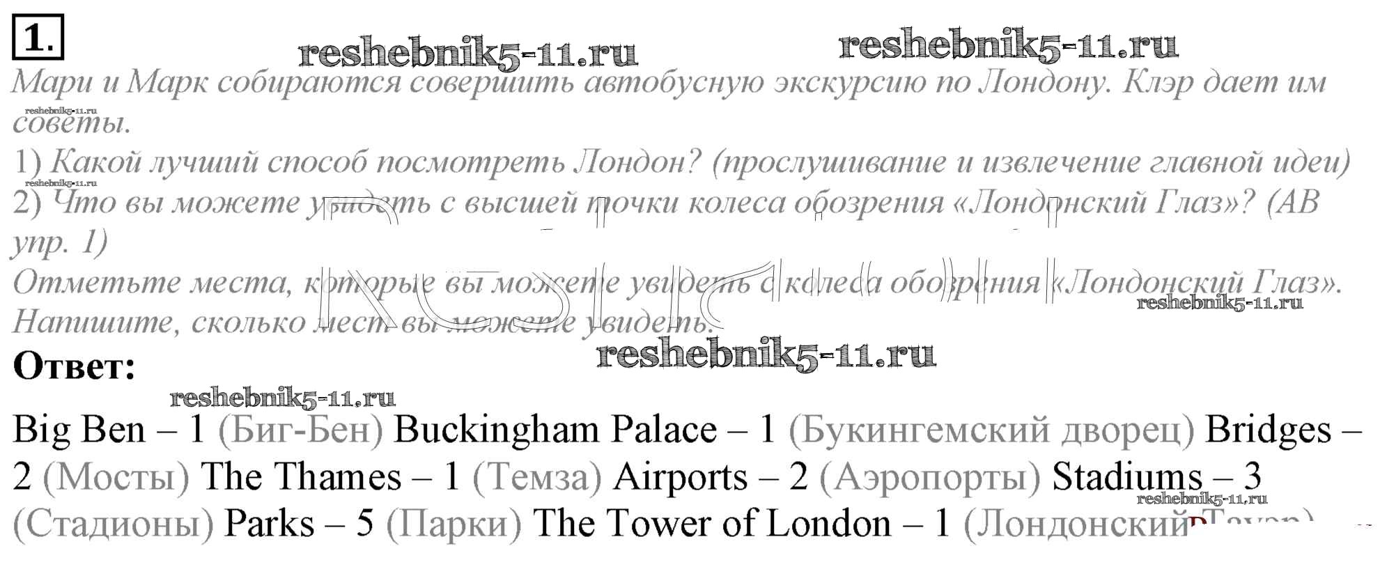 Готовая домашняя работа с ответами по Английскому языку за 5 класс Кузовлев, Лапа, Костина, Дуванова, Кузнецова Учебник УМК Просвещение 2015 ФГОС - Lesson 2. A tour of London 1