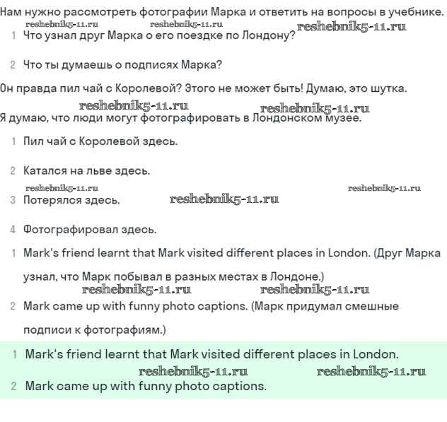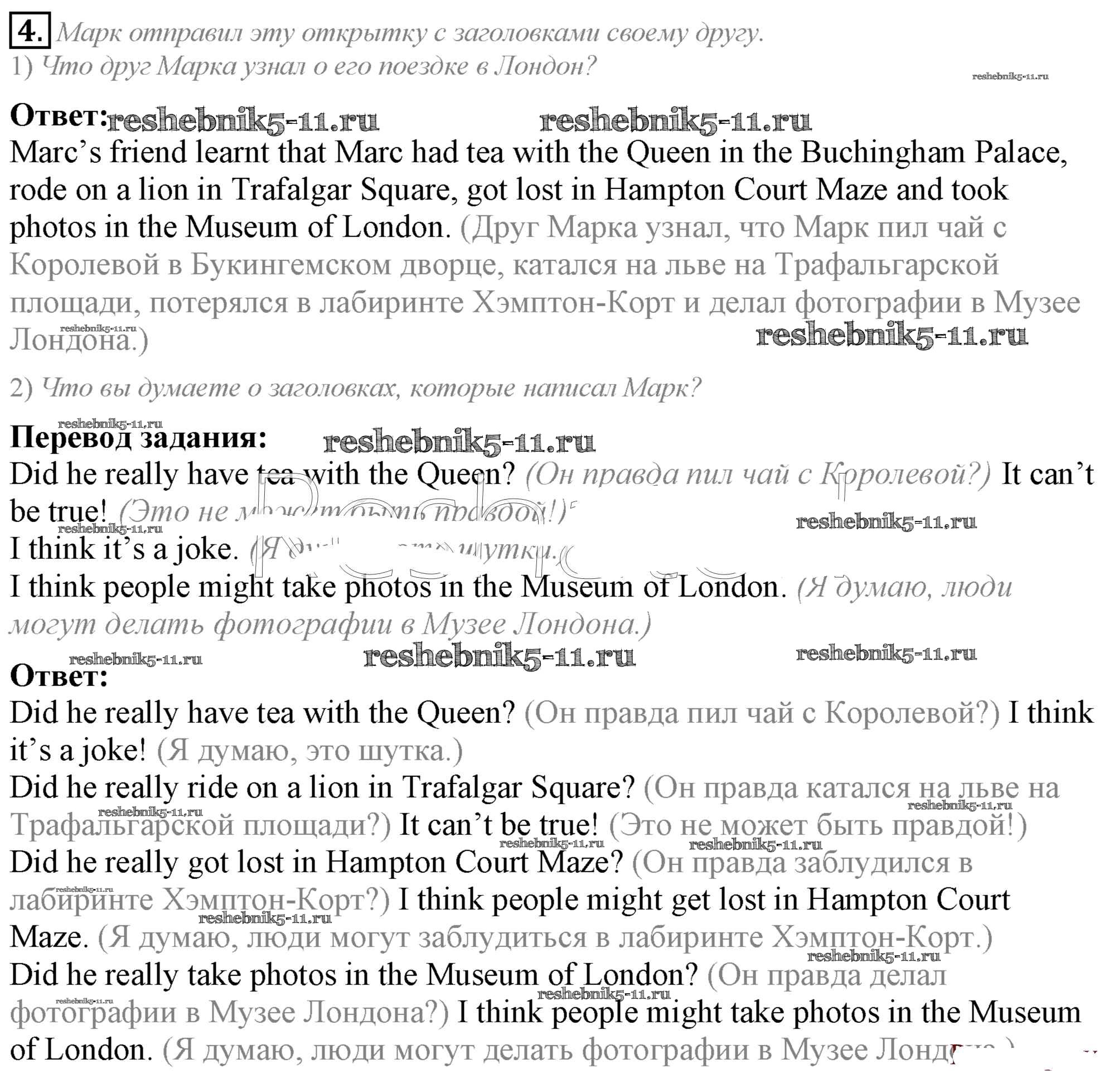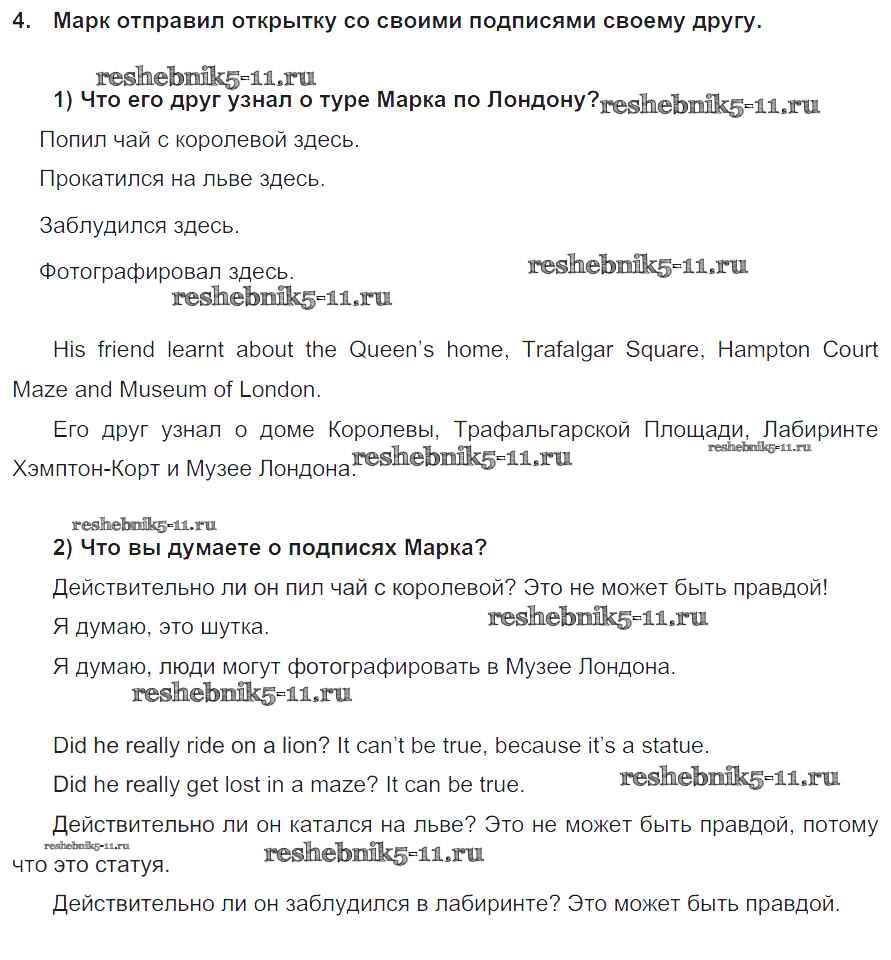 Готовая домашняя работа с ответами по Английскому языку за 5 класс Кузовлев, Лапа, Костина, Дуванова, Кузнецова Учебник УМК Просвещение 2015 ФГОС - Lesson 2. A tour of London 4