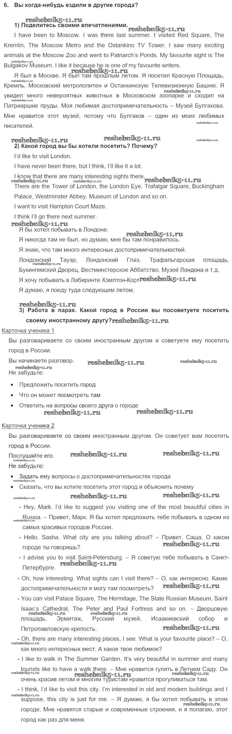 Готовая домашняя работа с ответами по Английскому языку за 5 класс Кузовлев, Лапа, Костина, Дуванова, Кузнецова Учебник УМК Просвещение 2015 ФГОС - Lesson 2. A tour of London 6