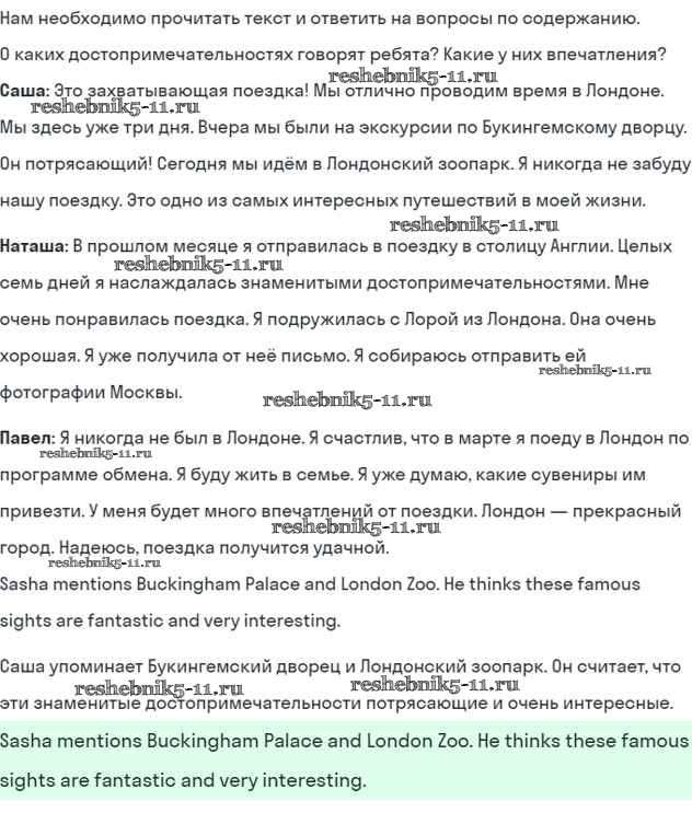 Готовая домашняя работа с ответами по Английскому языку за 5 класс Кузовлев, Лапа, Костина, Дуванова, Кузнецова Учебник УМК Просвещение 2015 ФГОС - Lesson 5. Do you like taking trips? 1