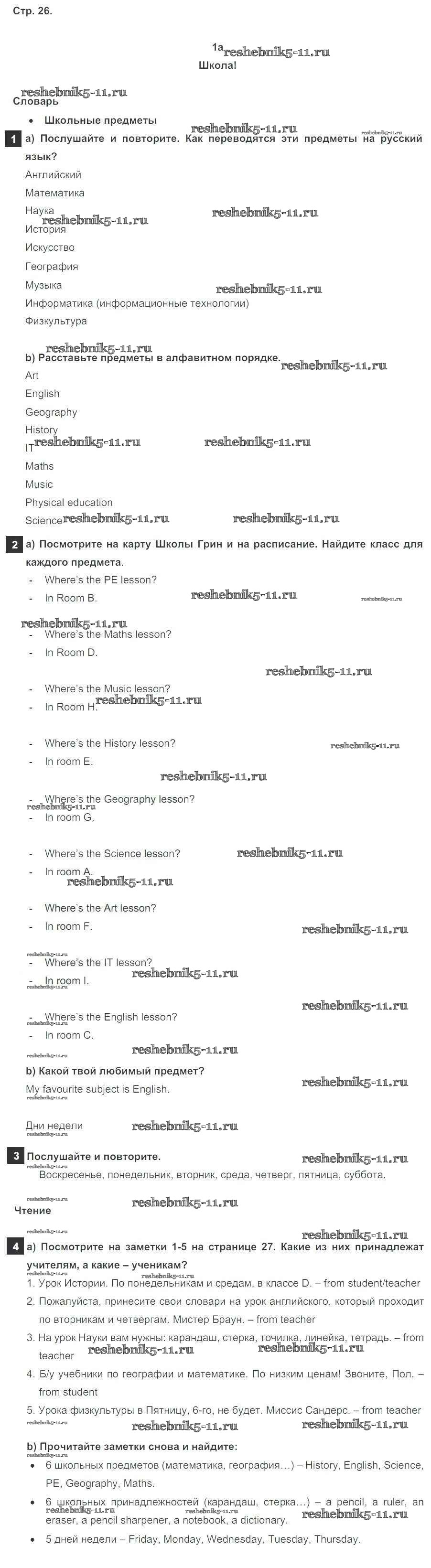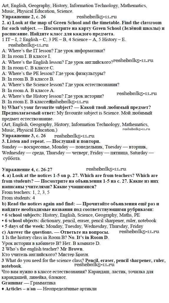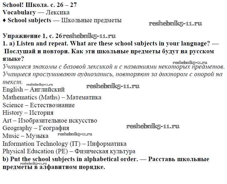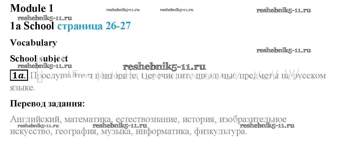 Готовая домашняя работа с ответами по Английскому языку за 5 класс Ваулина, Дули, Подоляко, Эванск Учебник Spotlight Просвещение 2015 ФГОС - Module 1. School days стр. 26