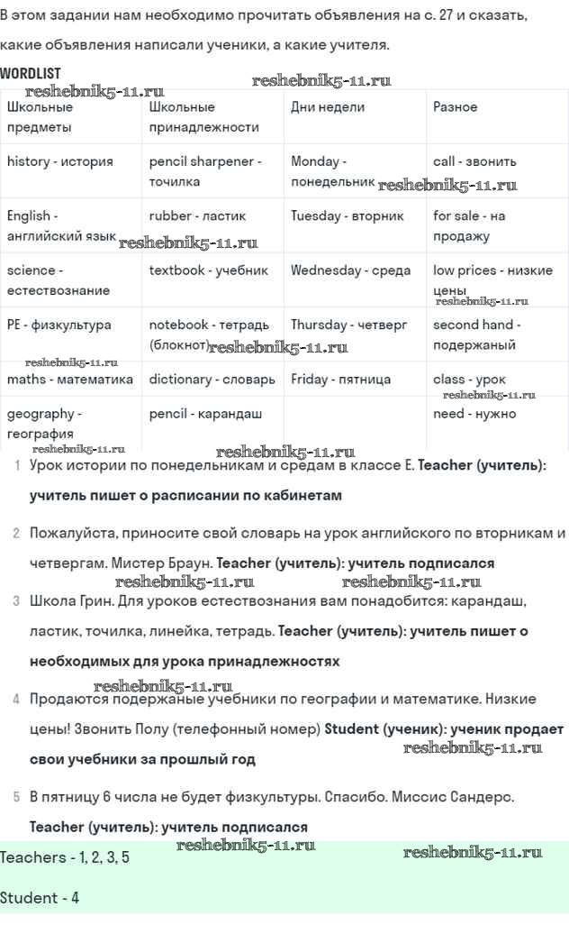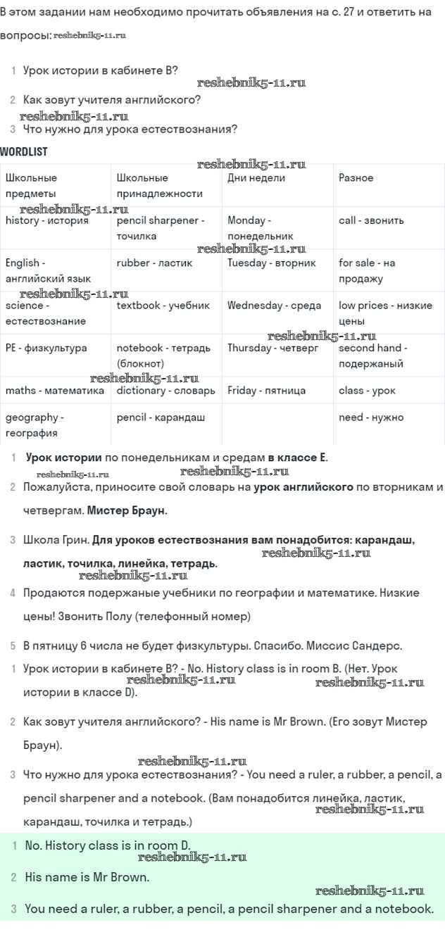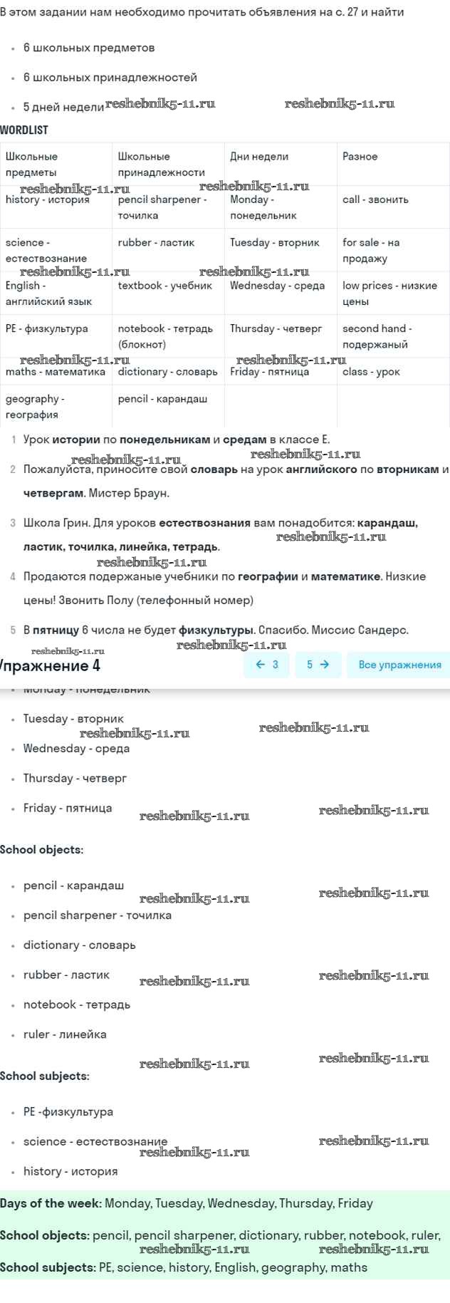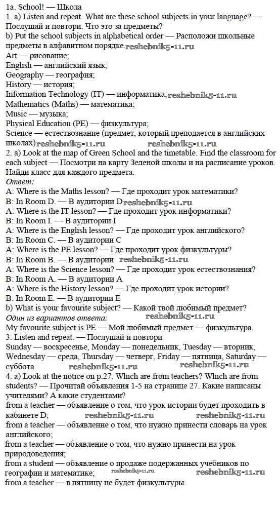 Готовая домашняя работа с ответами по Английскому языку за 5 класс Ваулина, Дули, Подоляко, Эванск Учебник Spotlight Просвещение 2015 ФГОС - Module 1. School days стр. 26