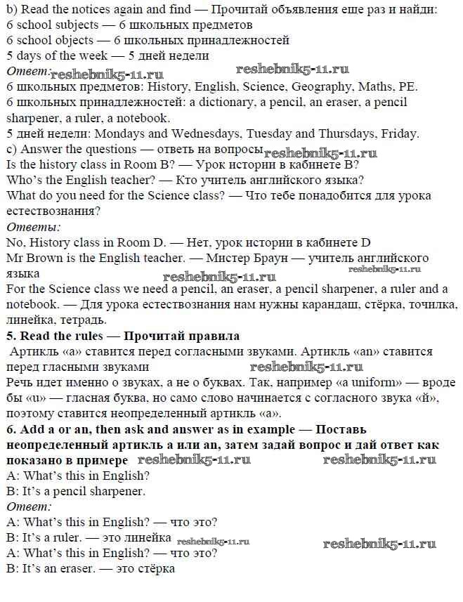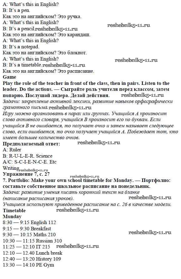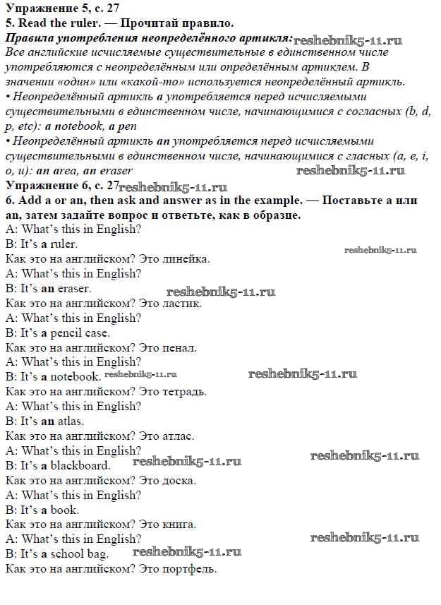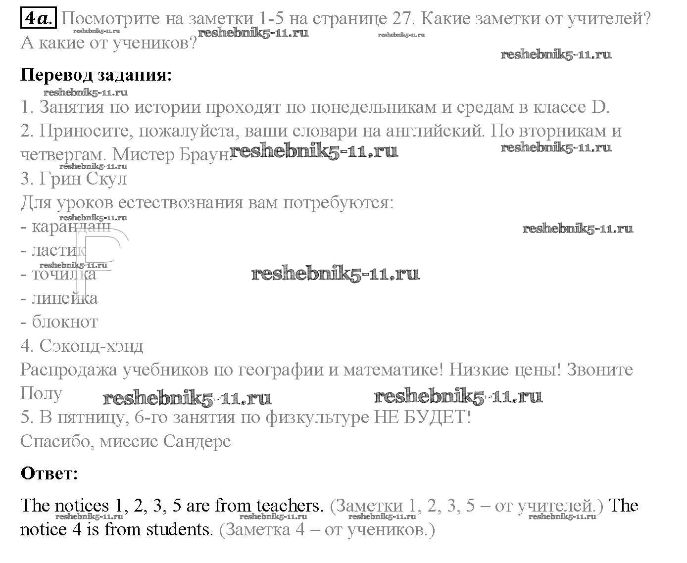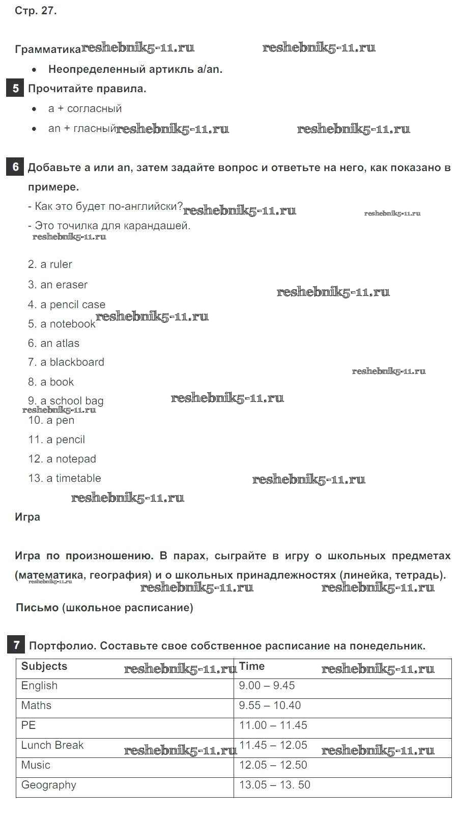 Готовая домашняя работа с ответами по Английскому языку за 5 класс Ваулина, Дули, Подоляко, Эванск Учебник Spotlight Просвещение 2015 ФГОС - Module 1. School days стр. 27