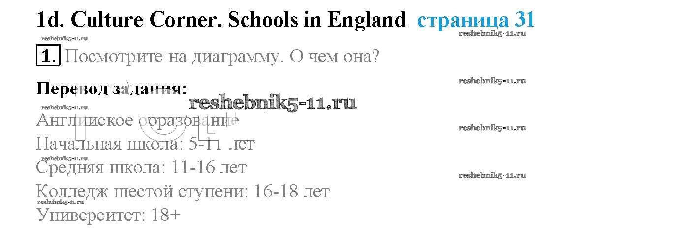Готовая домашняя работа с ответами по Английскому языку за 5 класс Ваулина, Дули, Подоляко, Эванск Учебник Spotlight Просвещение 2015 ФГОС - Module 1. School days стр. 31