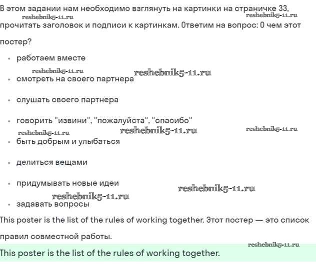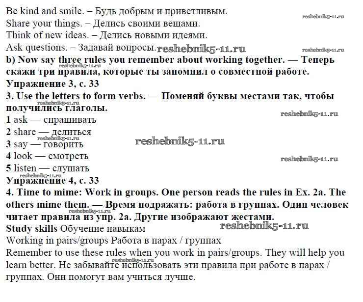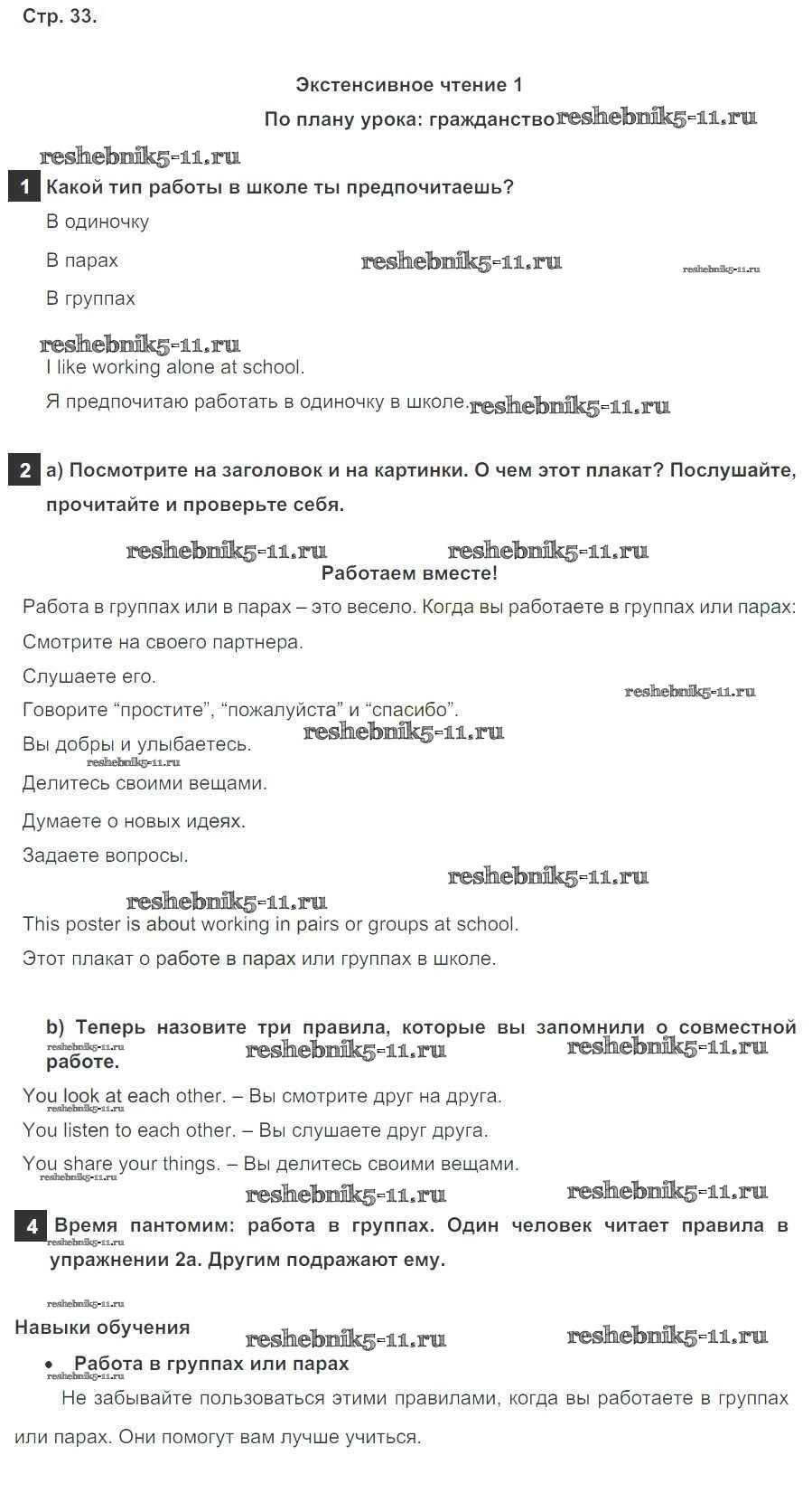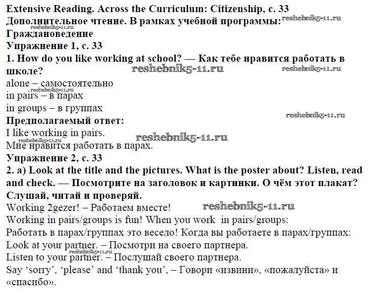 Готовая домашняя работа с ответами по Английскому языку за 5 класс Ваулина, Дули, Подоляко, Эванск Учебник Spotlight Просвещение 2015 ФГОС - Module 1. School days стр. 33