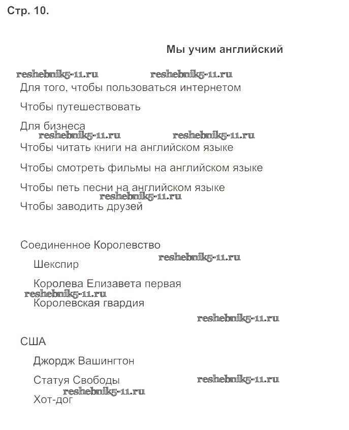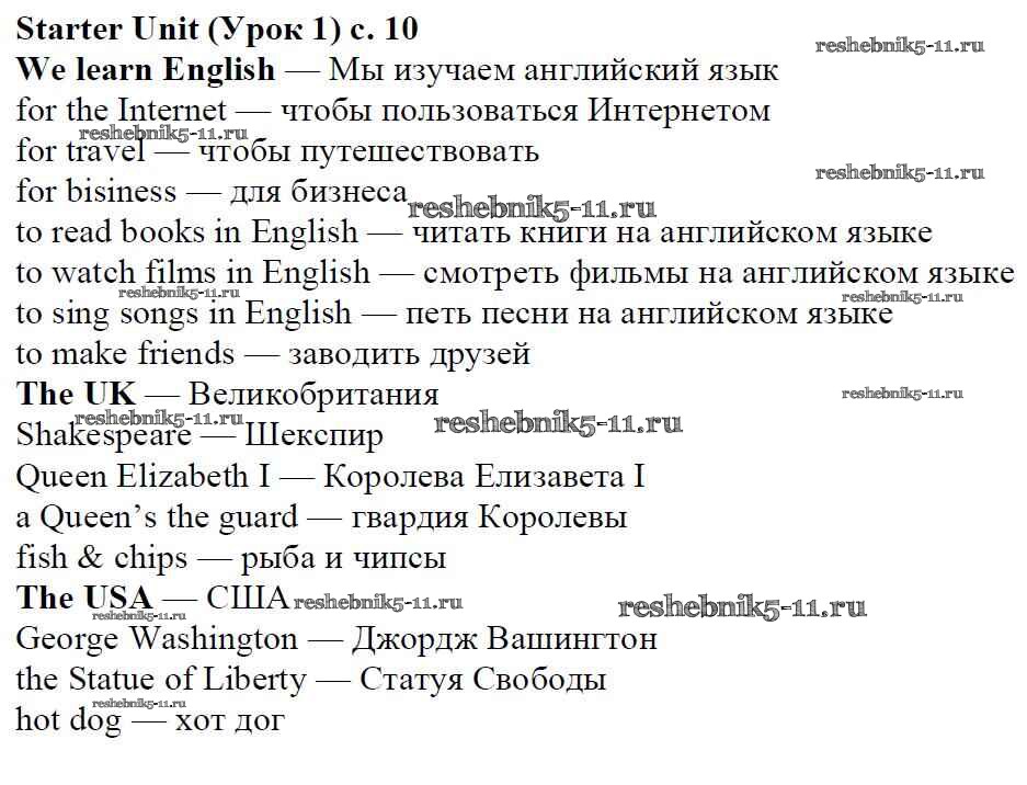 Готовая домашняя работа с ответами по Английскому языку за 5 класс Ваулина, Дули, Подоляко, Эванск Учебник Spotlight Просвещение 2015 ФГОС - Starter Unit стр. 10