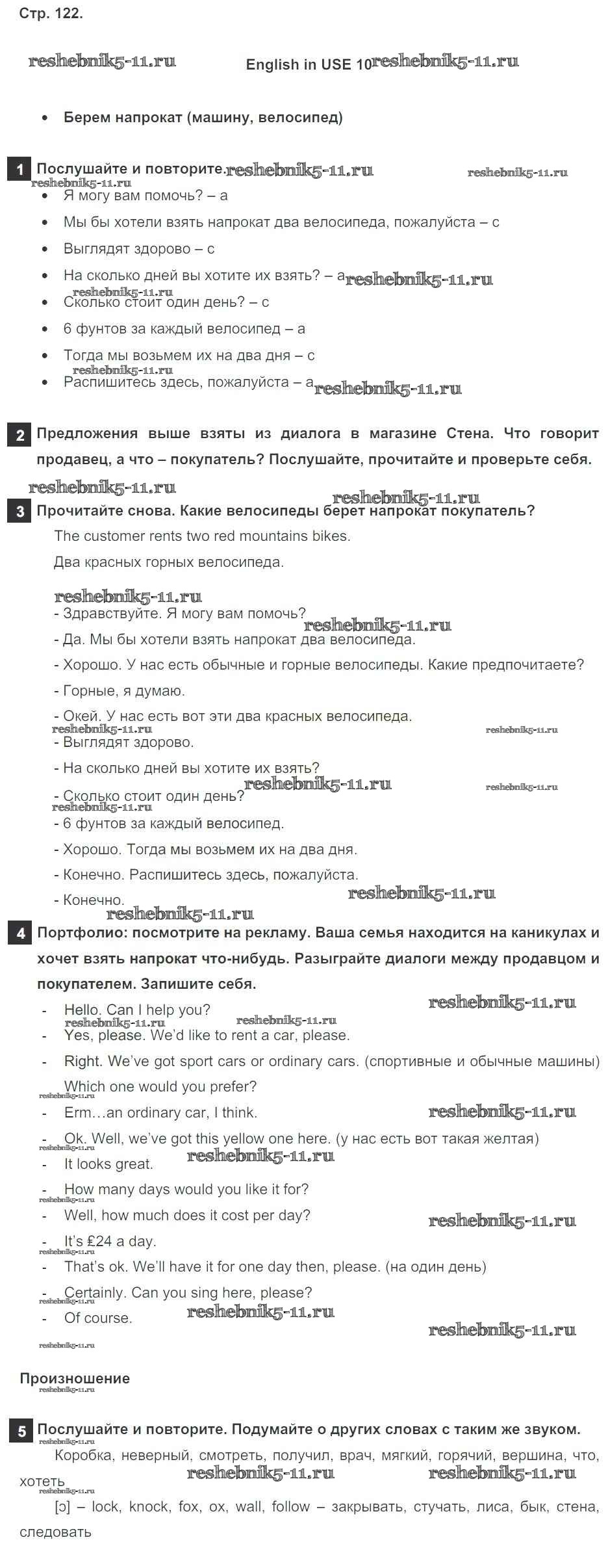 Английский язык за 5 класс Ваулина Учебник Spotlight Просвещение module 10 стр. 122