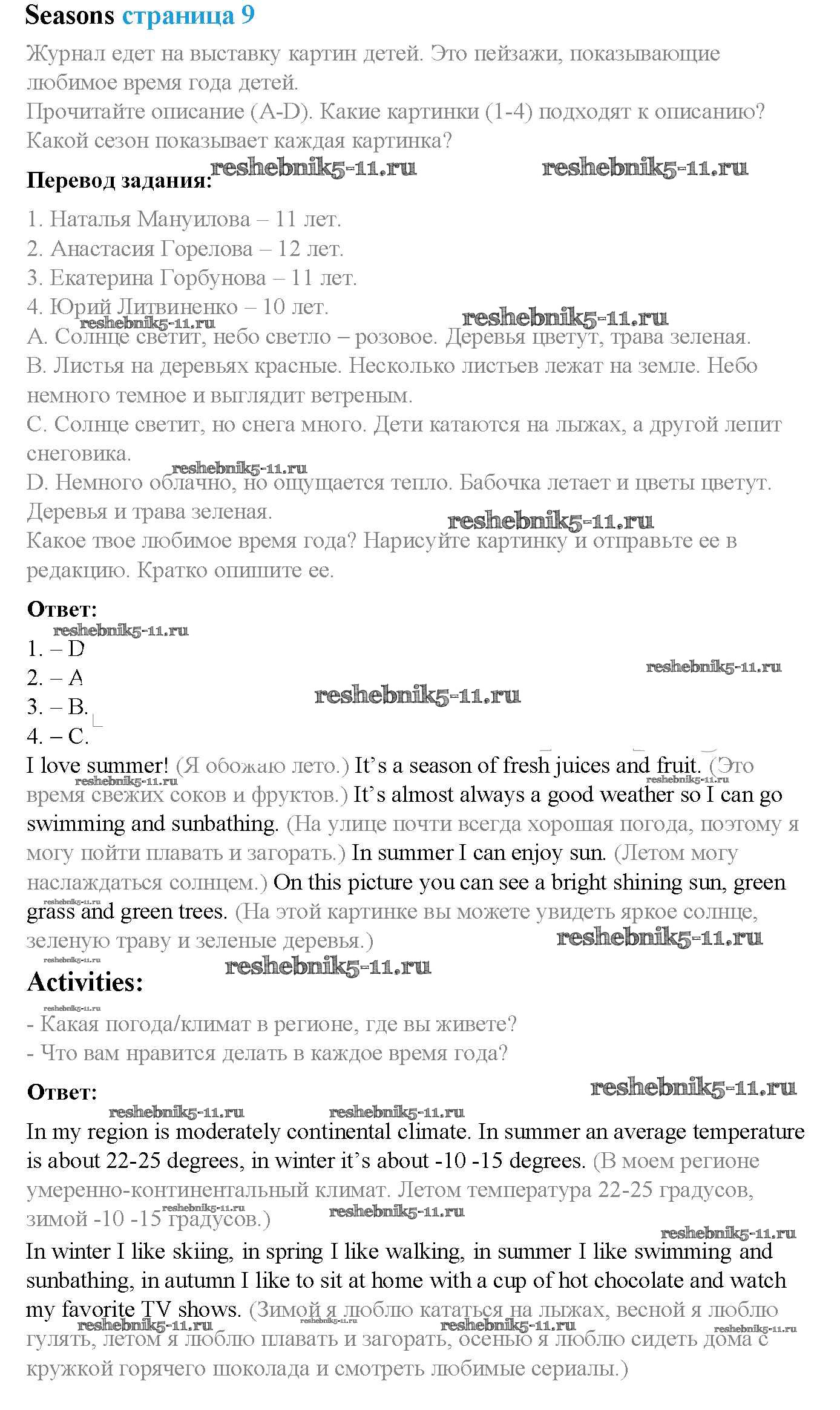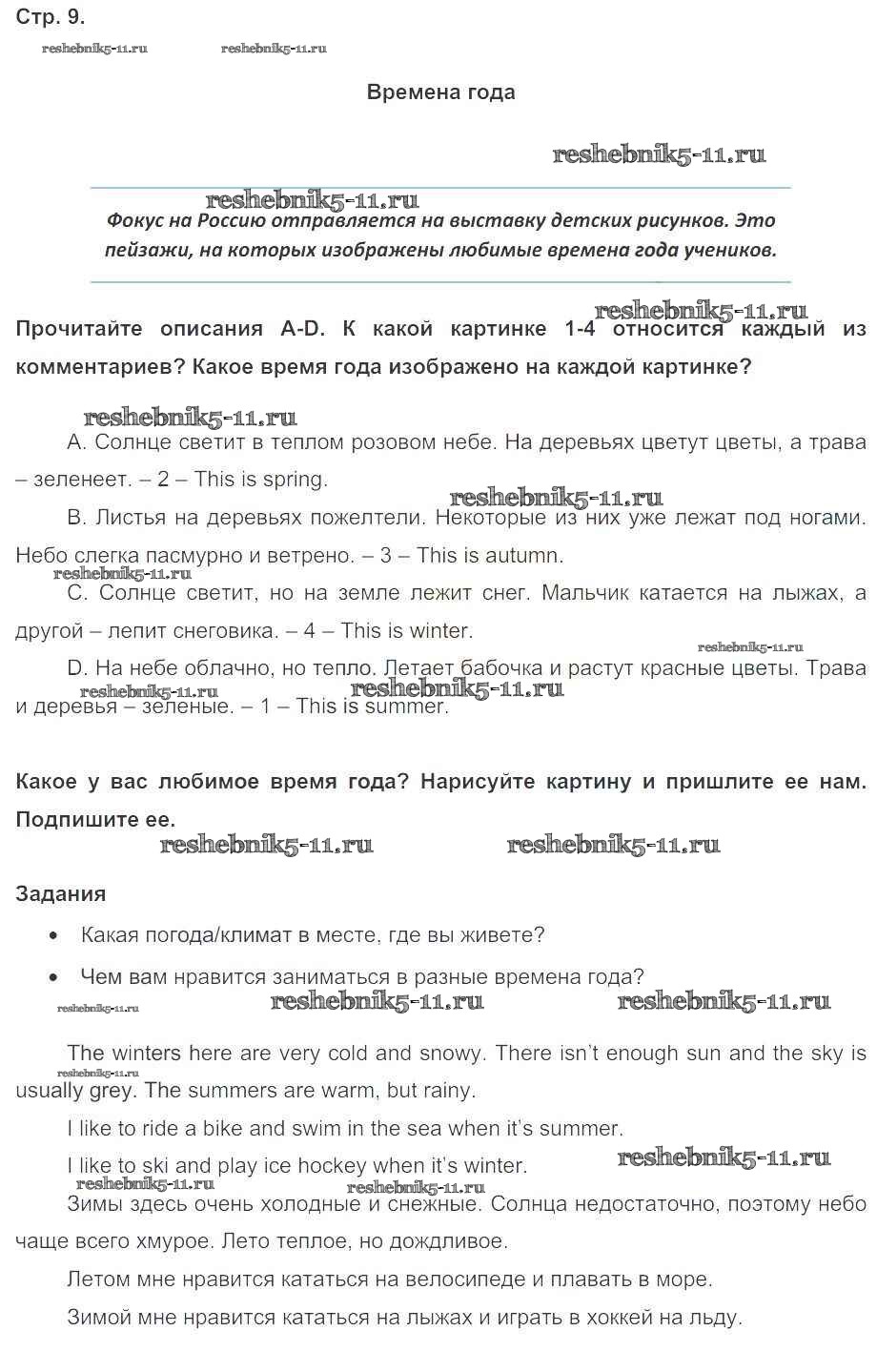 Готовая домашняя работа с ответами по Английскому языку за 5 класс Ваулина, Дули, Подоляко, Эванск Учебник Spotlight Просвещение 2015 ФГОС - Spotlight on Russia стр. 9