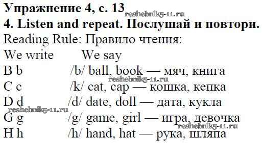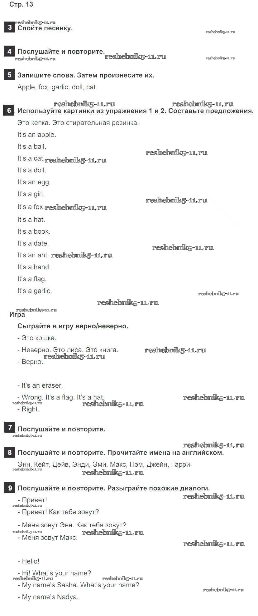 Готовая домашняя работа с ответами по Английскому языку за 5 класс Ваулина, Дули, Подоляко, Эванск Учебник Spotlight Просвещение 2015 ФГОС - Starter Unit стр. 13