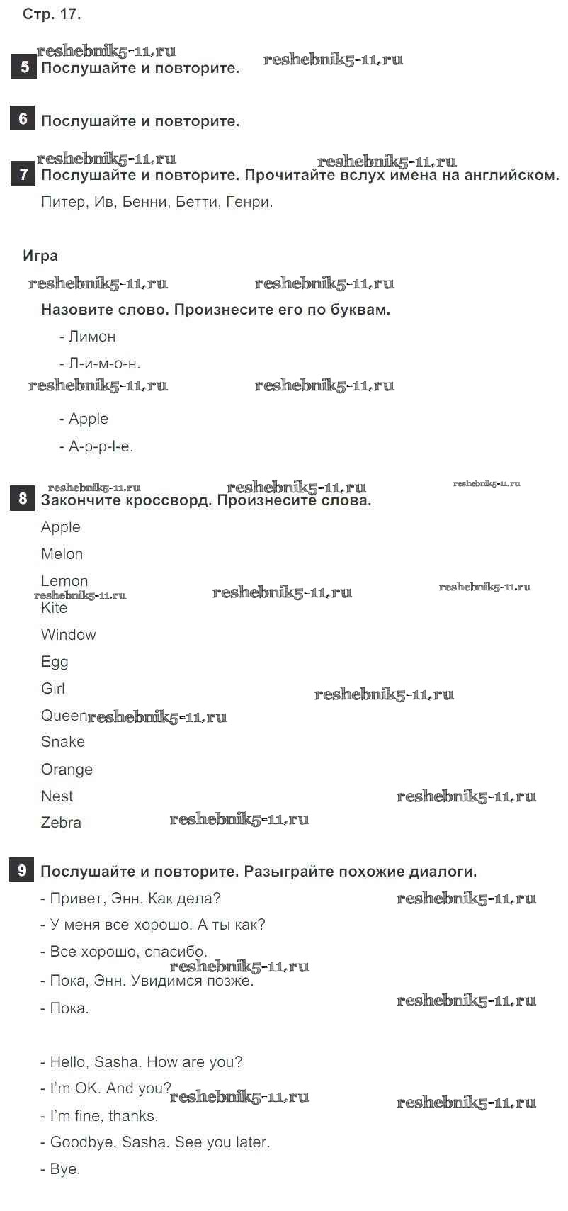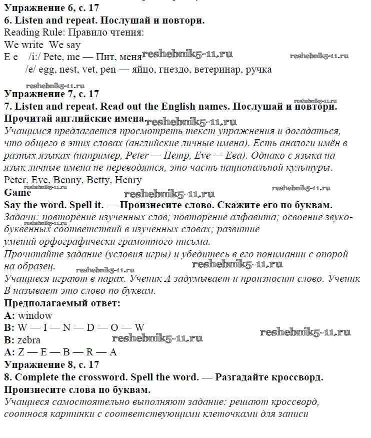 Готовая домашняя работа с ответами по Английскому языку за 5 класс Ваулина, Дули, Подоляко, Эванск Учебник Spotlight Просвещение 2015 ФГОС - Starter Unit стр. 17