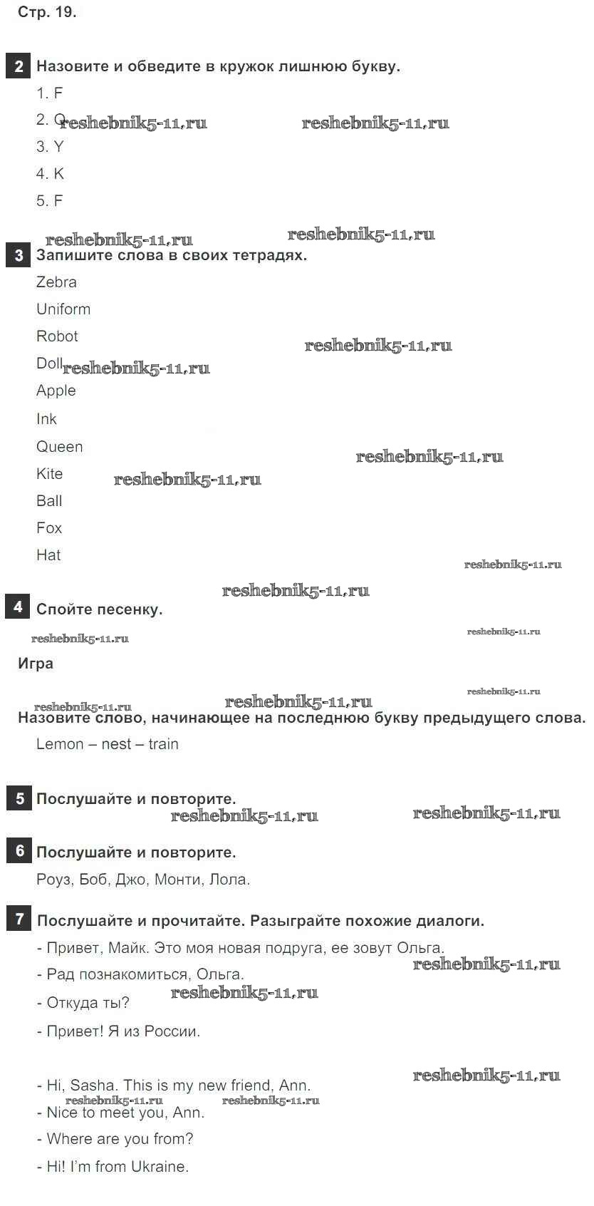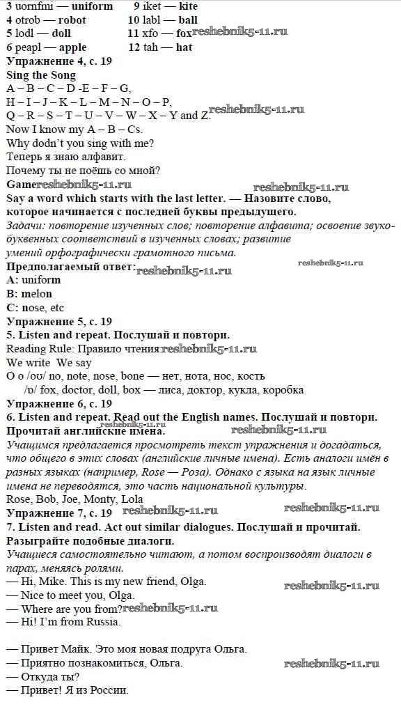 Готовая домашняя работа с ответами по Английскому языку за 5 класс Ваулина, Дули, Подоляко, Эванск Учебник Spotlight Просвещение 2015 ФГОС - Starter Unit стр. 19
