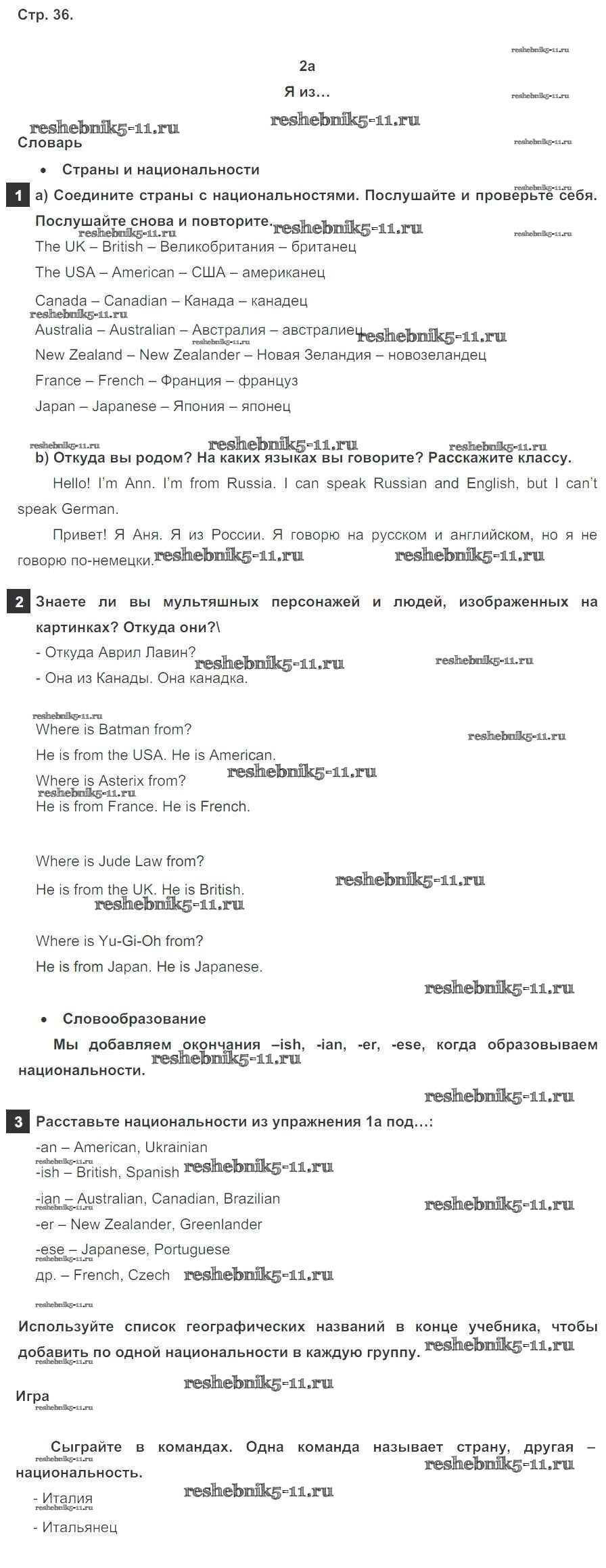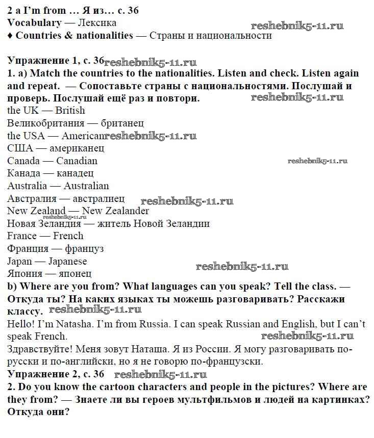 Английский язык за 5 класс Ваулина Учебник Spotlight Просвещение module 2 стр. 36