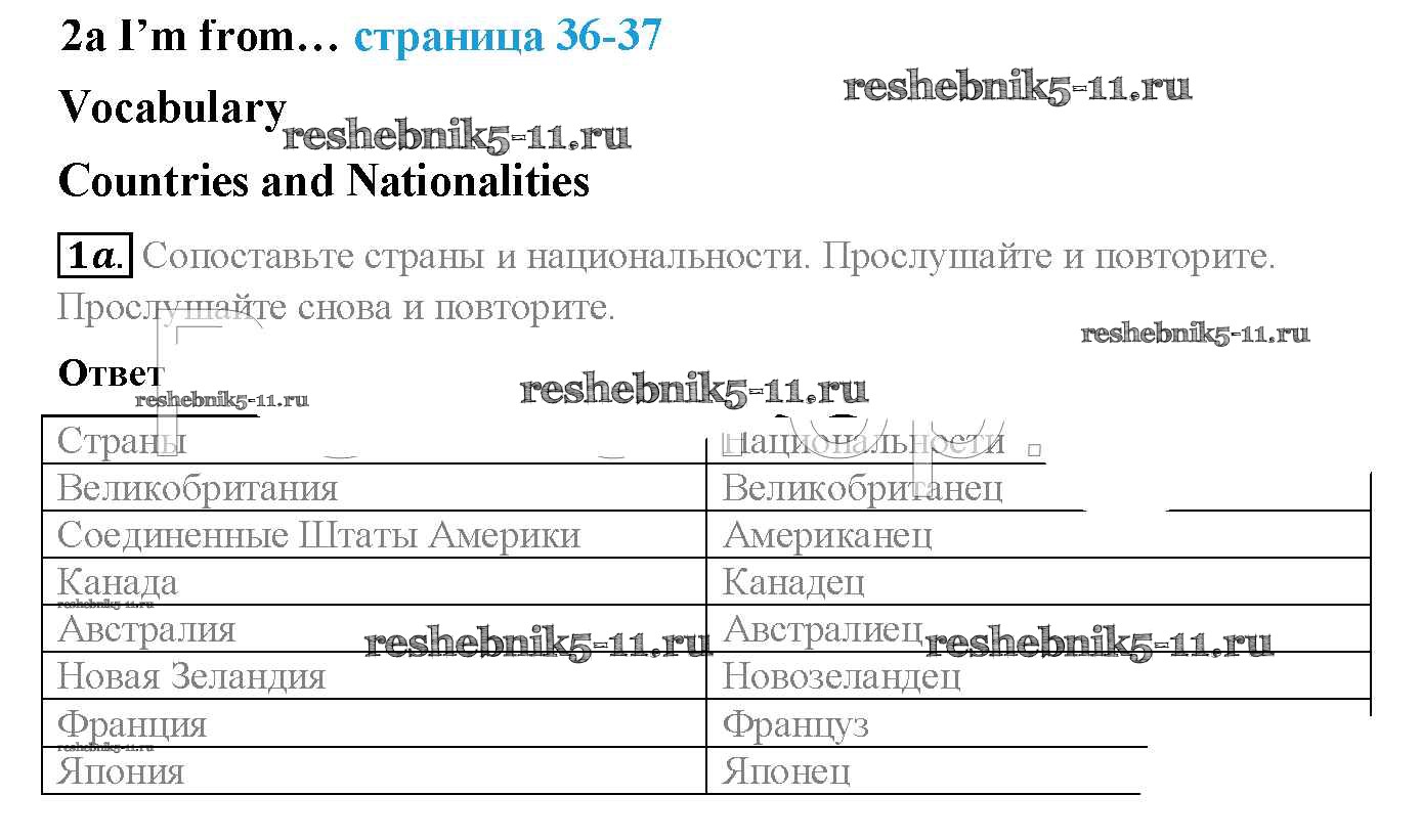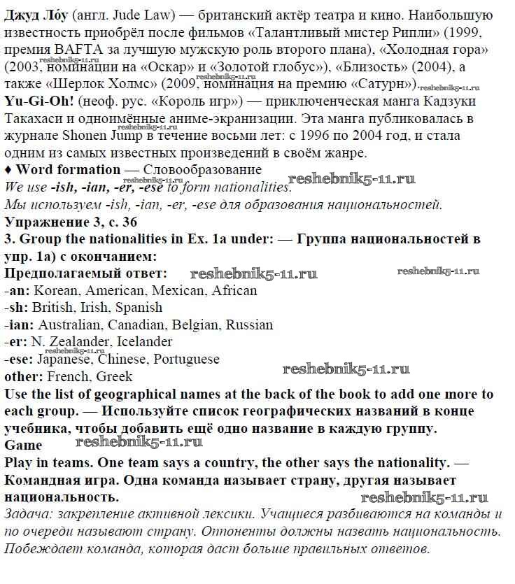 Готовая домашняя работа с ответами по Английскому языку за 5 класс Ваулина, Дули, Подоляко, Эванск Учебник Spotlight Просвещение 2015 ФГОС - Module 2. That`s me! стр. 36