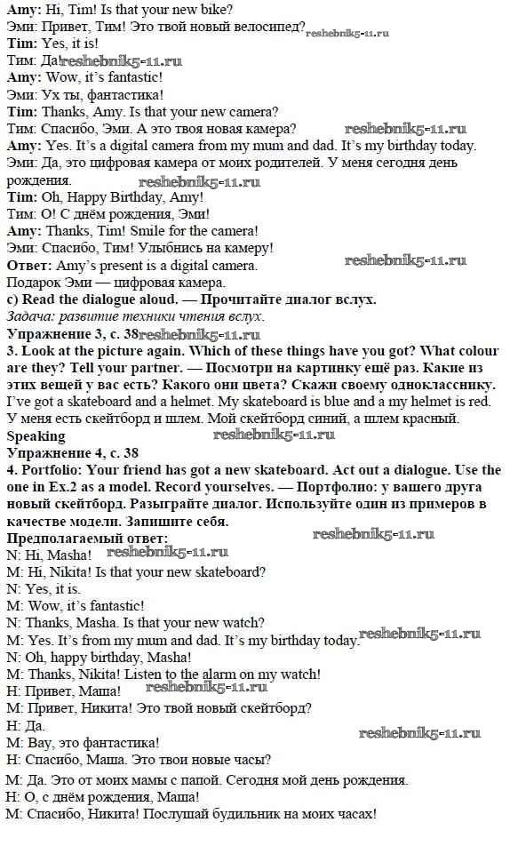Готовая домашняя работа с ответами по Английскому языку за 5 класс Ваулина, Дули, Подоляко, Эванск Учебник Spotlight Просвещение 2015 ФГОС - Module 2. That`s me! стр. 38