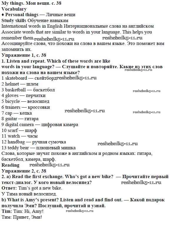 Английский язык за 5 класс Ваулина Учебник Spotlight Просвещение module 2 стр. 38
