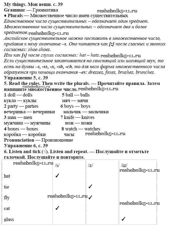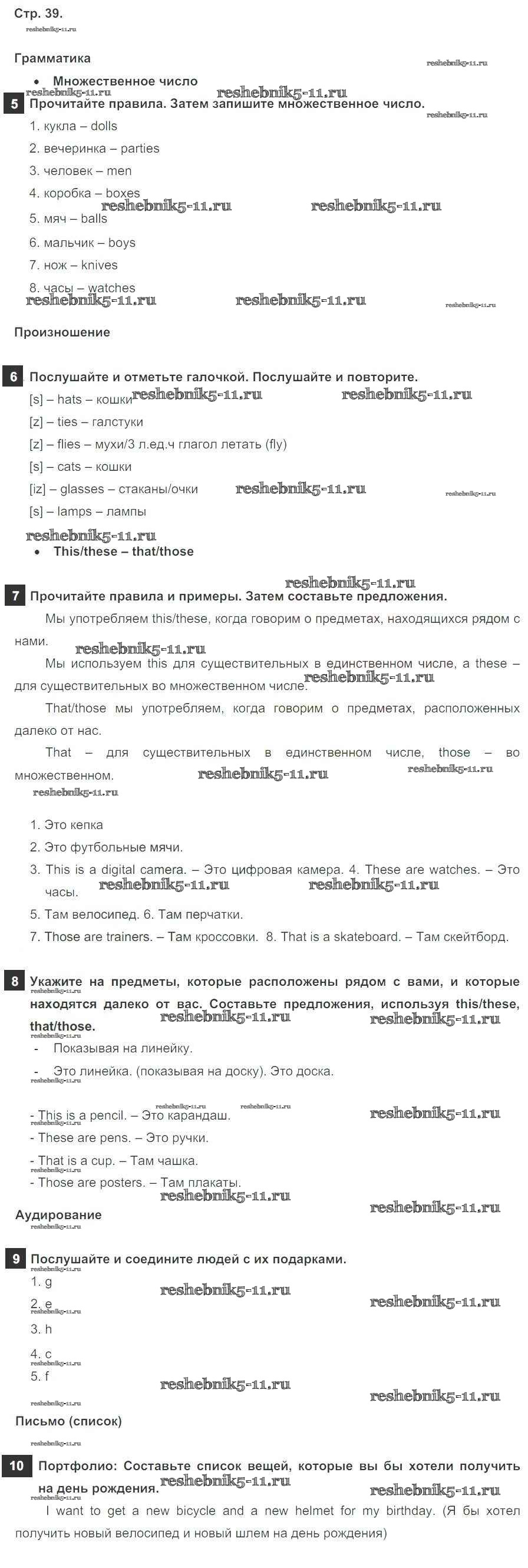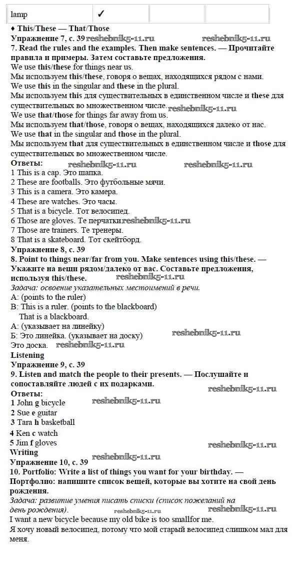Готовая домашняя работа с ответами по Английскому языку за 5 класс Ваулина, Дули, Подоляко, Эванск Учебник Spotlight Просвещение 2015 ФГОС - Module 2. That`s me! стр. 39