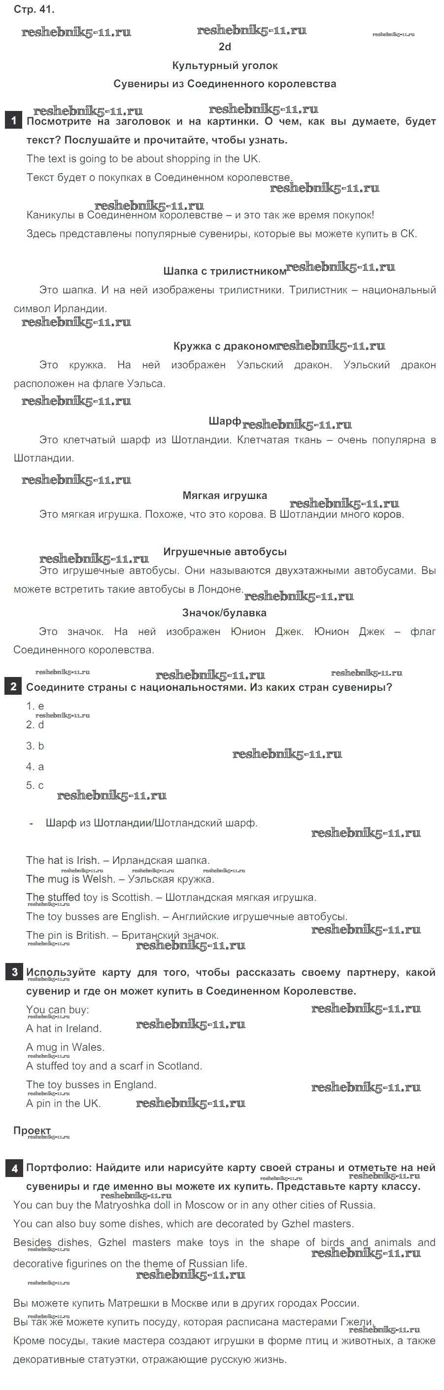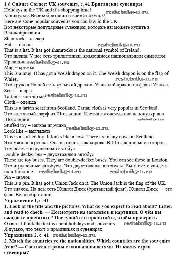 Готовая домашняя работа с ответами по Английскому языку за 5 класс Ваулина, Дули, Подоляко, Эванск Учебник Spotlight Просвещение 2015 ФГОС - Module 2. That`s me! стр. 41
