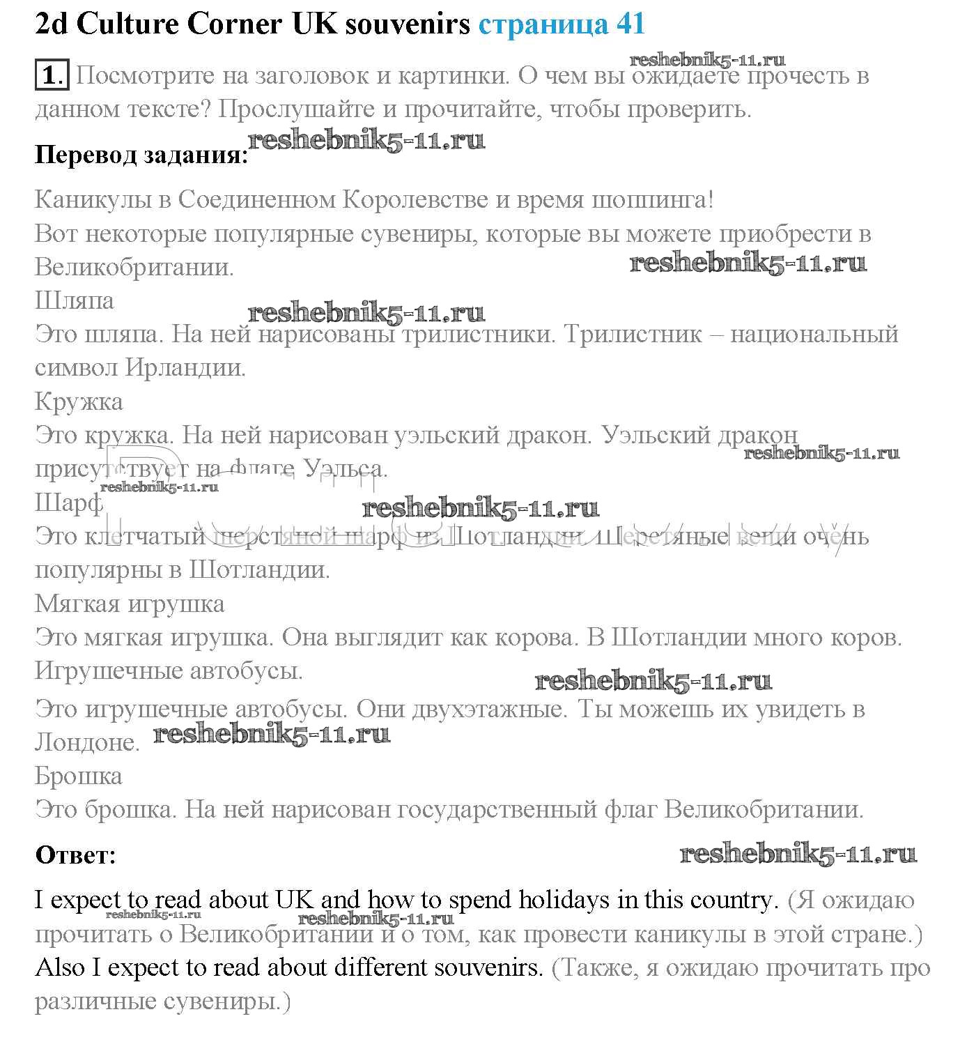 Английский язык за 5 класс Ваулина Учебник Spotlight Просвещение module 2 стр. 41