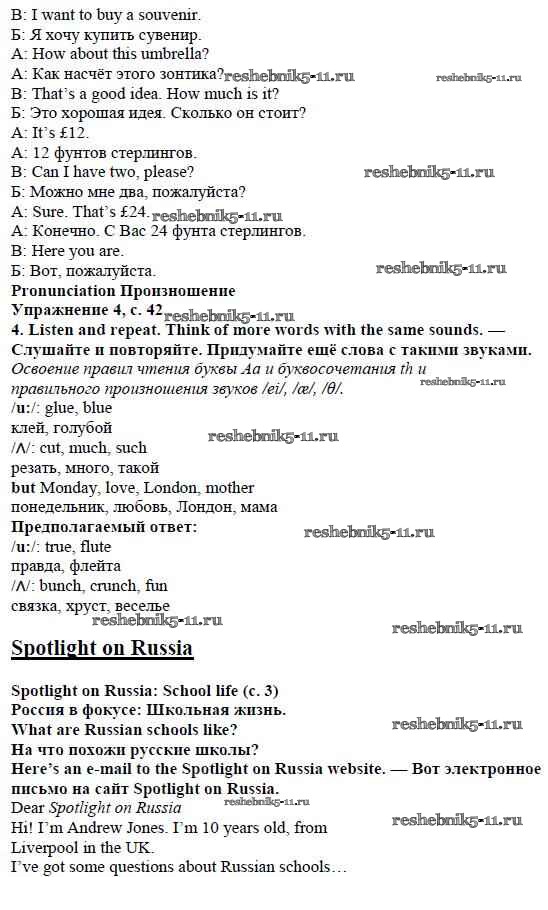 Английский язык за 5 класс Ваулина Учебник Spotlight Просвещение module 2 стр. 42