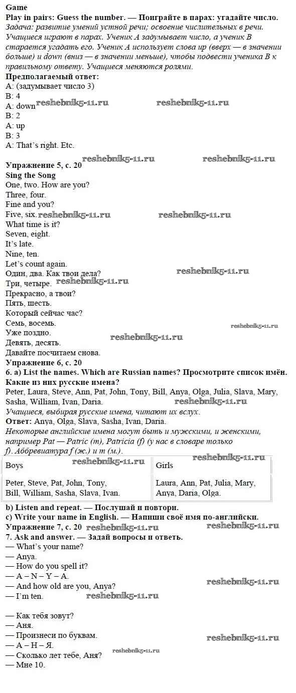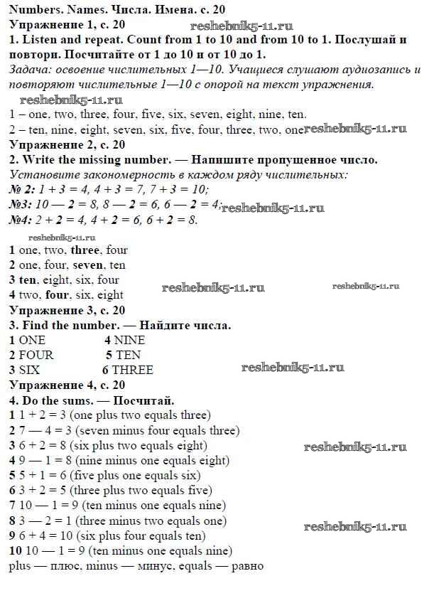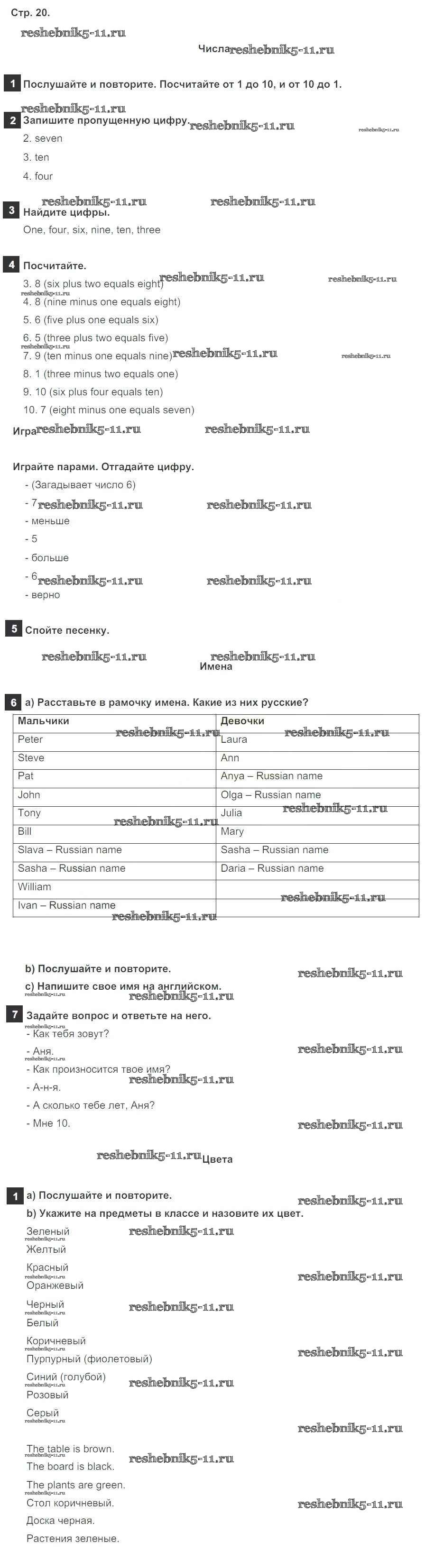 Готовая домашняя работа с ответами по Английскому языку за 5 класс Ваулина, Дули, Подоляко, Эванск Учебник Spotlight Просвещение 2015 ФГОС - Starter Unit стр. 20