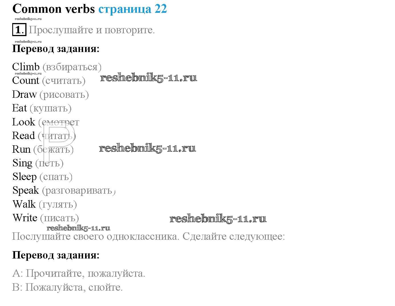 Готовая домашняя работа с ответами по Английскому языку за 5 класс Ваулина, Дули, Подоляко, Эванск Учебник Spotlight Просвещение 2015 ФГОС - Starter Unit стр. 22
