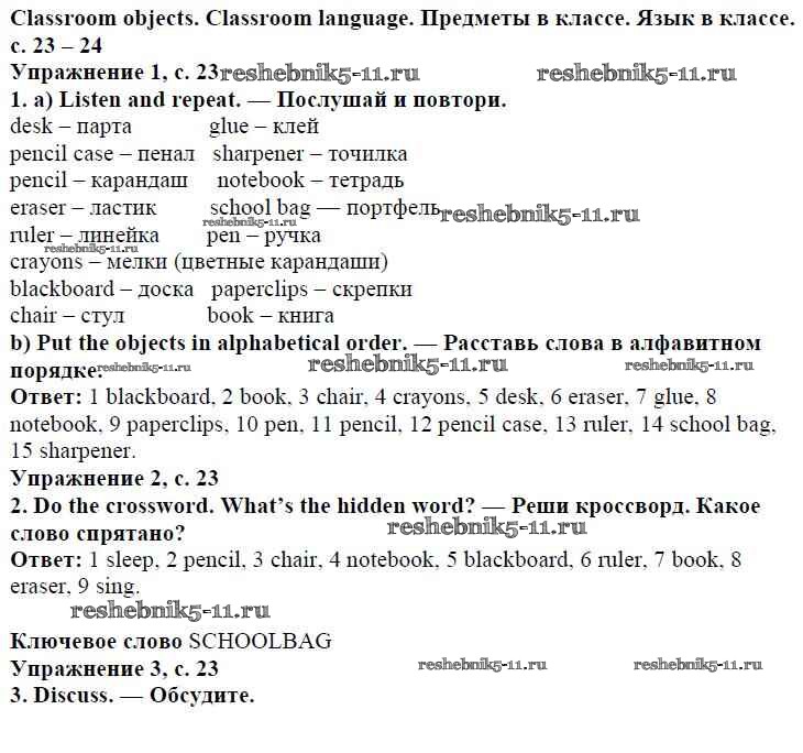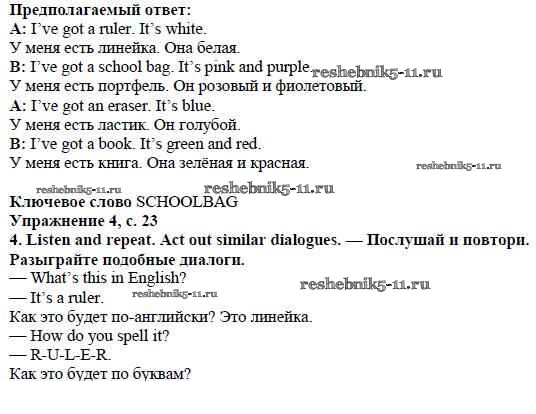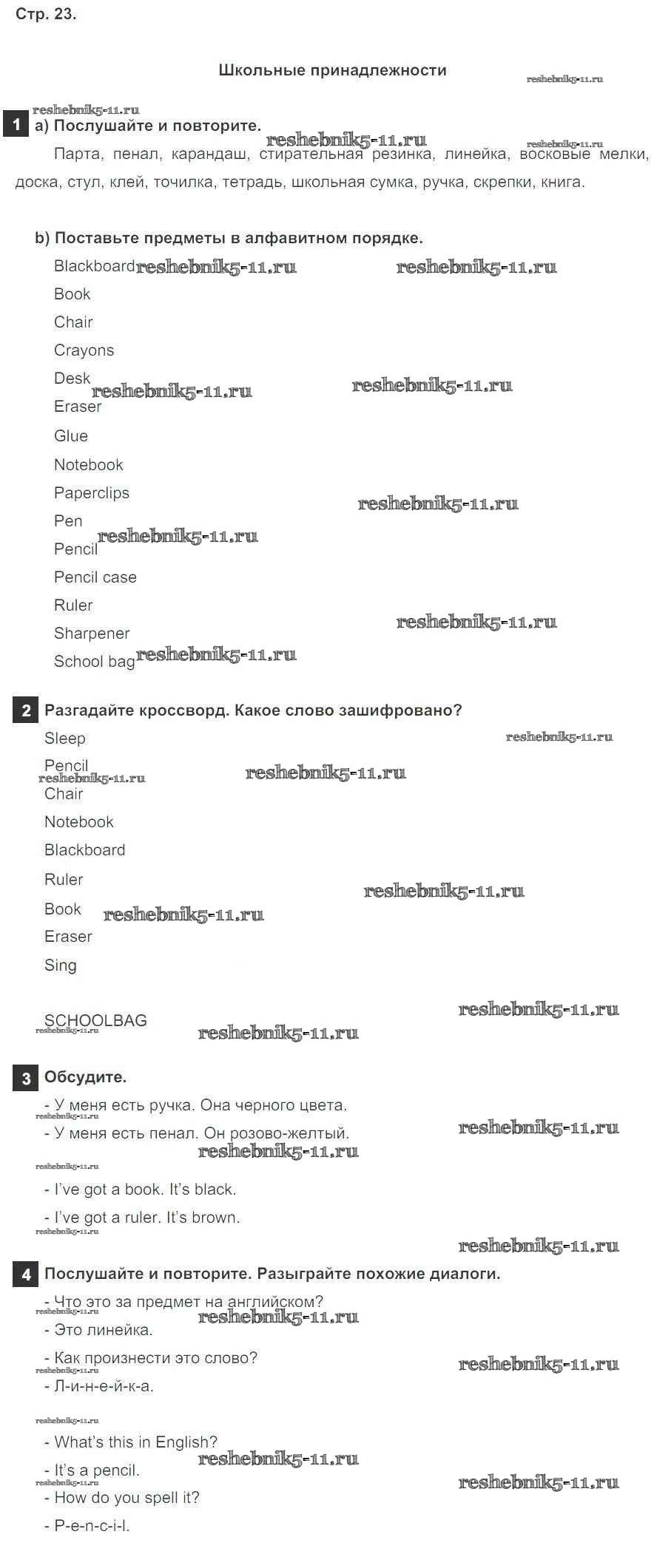 Готовая домашняя работа с ответами по Английскому языку за 5 класс Ваулина, Дули, Подоляко, Эванск Учебник Spotlight Просвещение 2015 ФГОС - Starter Unit стр. 23
