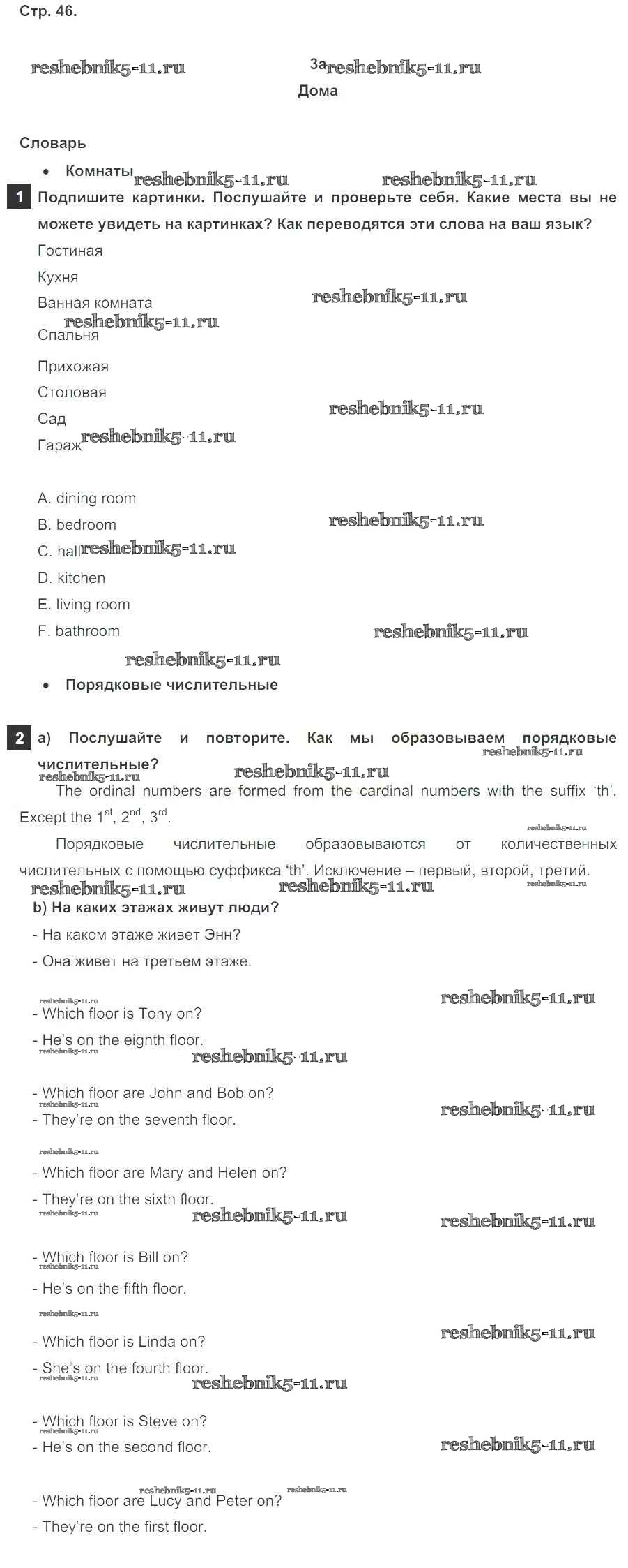 Готовая домашняя работа с ответами по Английскому языку за 5 класс Ваулина, Дули, Подоляко, Эванск Учебник Spotlight Просвещение 2015 ФГОС - Module 3. My home, my castle стр. 46