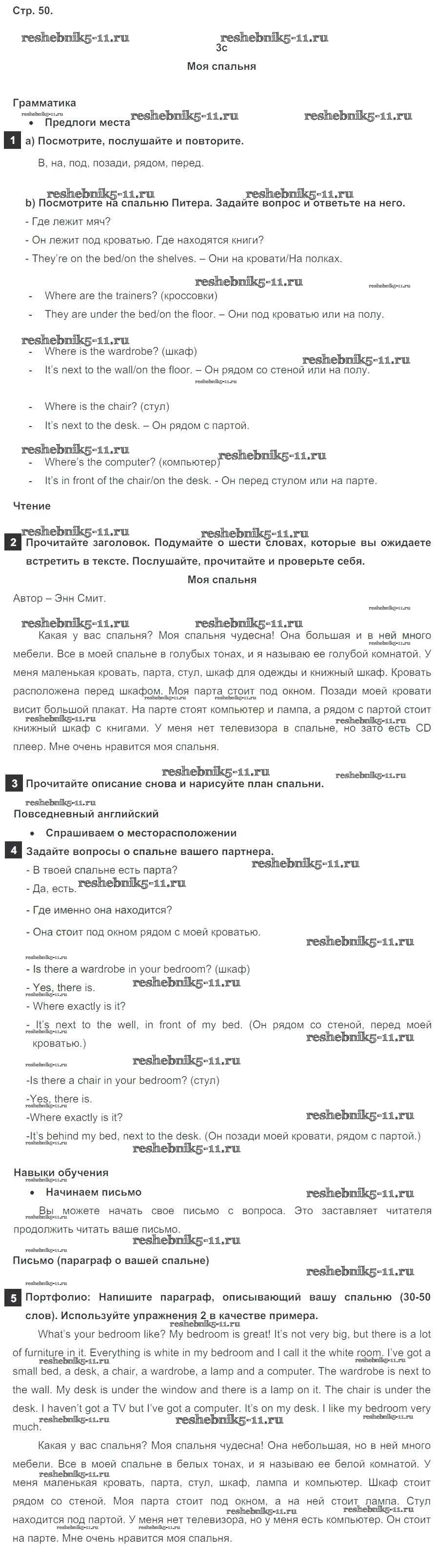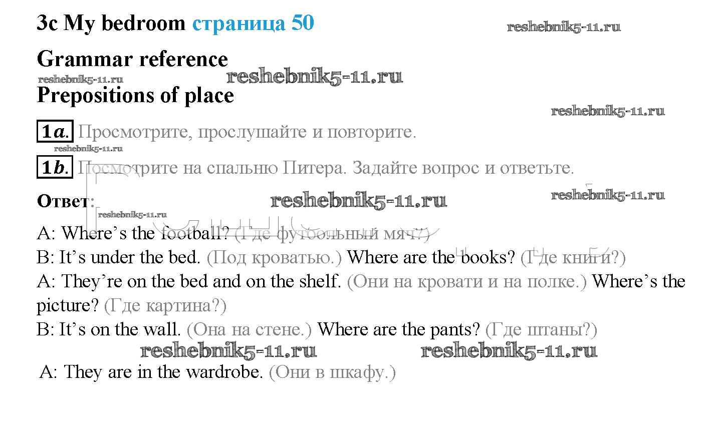 Готовая домашняя работа с ответами по Английскому языку за 5 класс Ваулина, Дули, Подоляко, Эванск Учебник Spotlight Просвещение 2015 ФГОС - Module 3. My home, my castle стр. 50