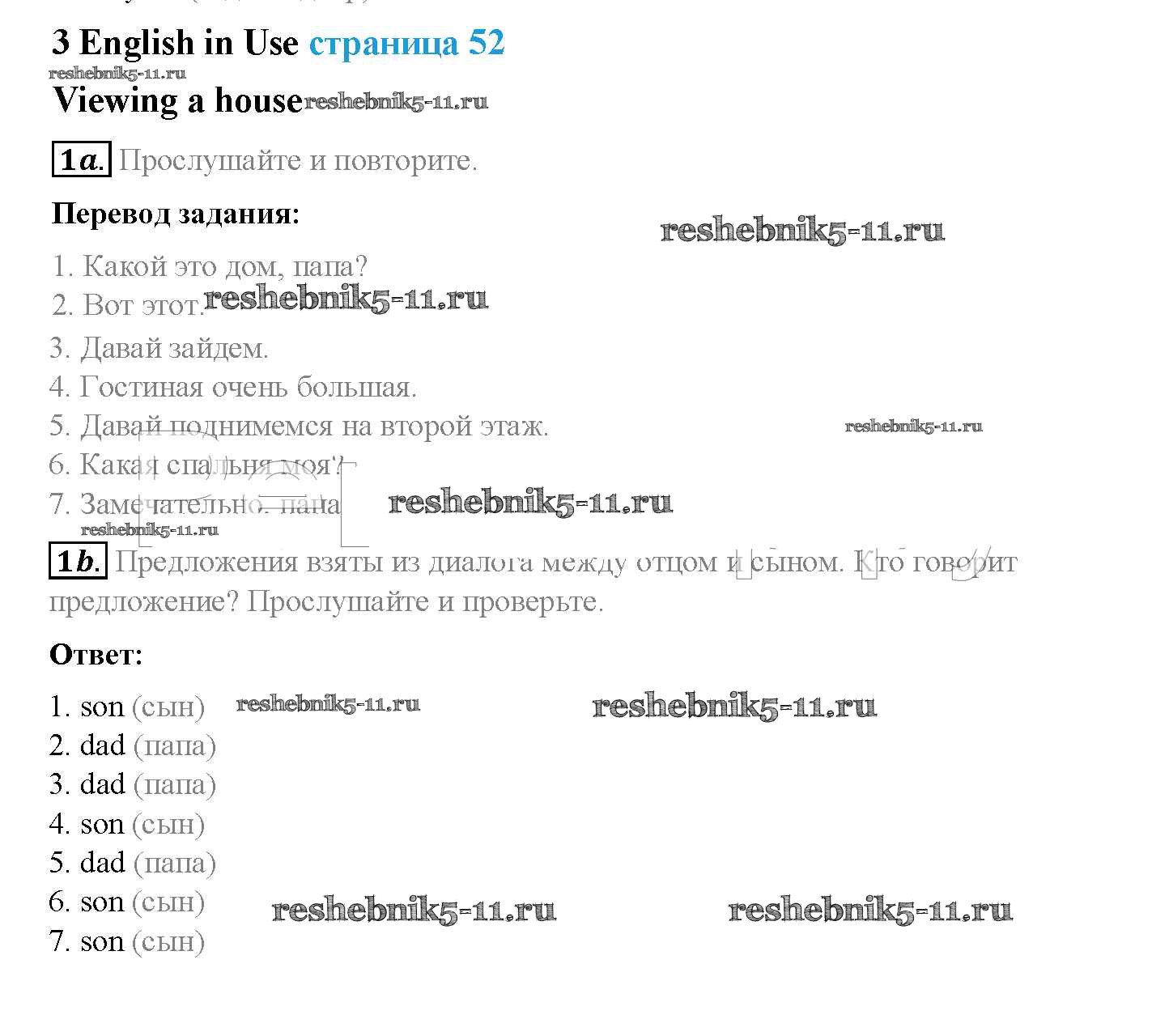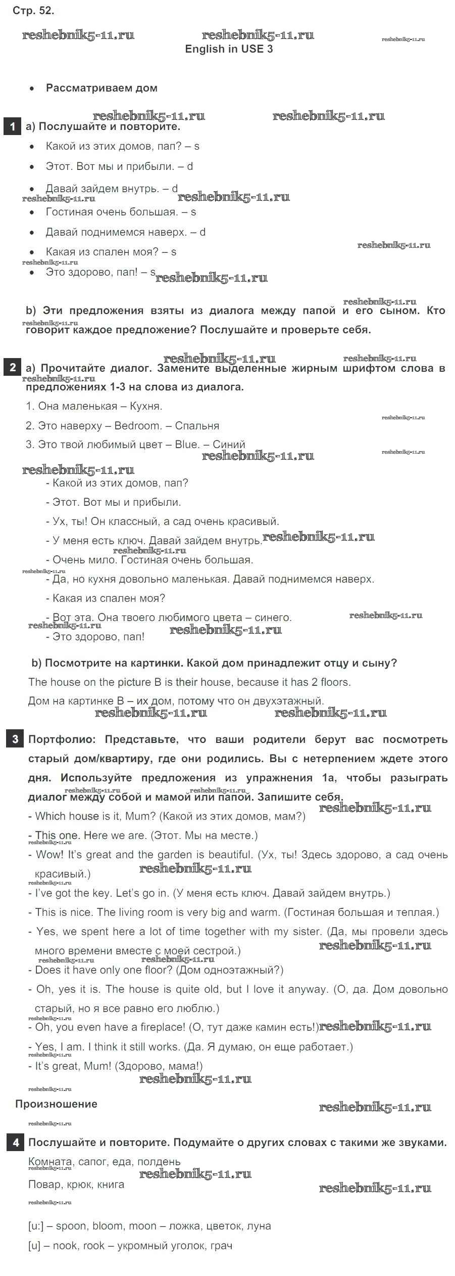 Готовая домашняя работа с ответами по Английскому языку за 5 класс Ваулина, Дули, Подоляко, Эванск Учебник Spotlight Просвещение 2015 ФГОС - Module 3. My home, my castle стр. 52