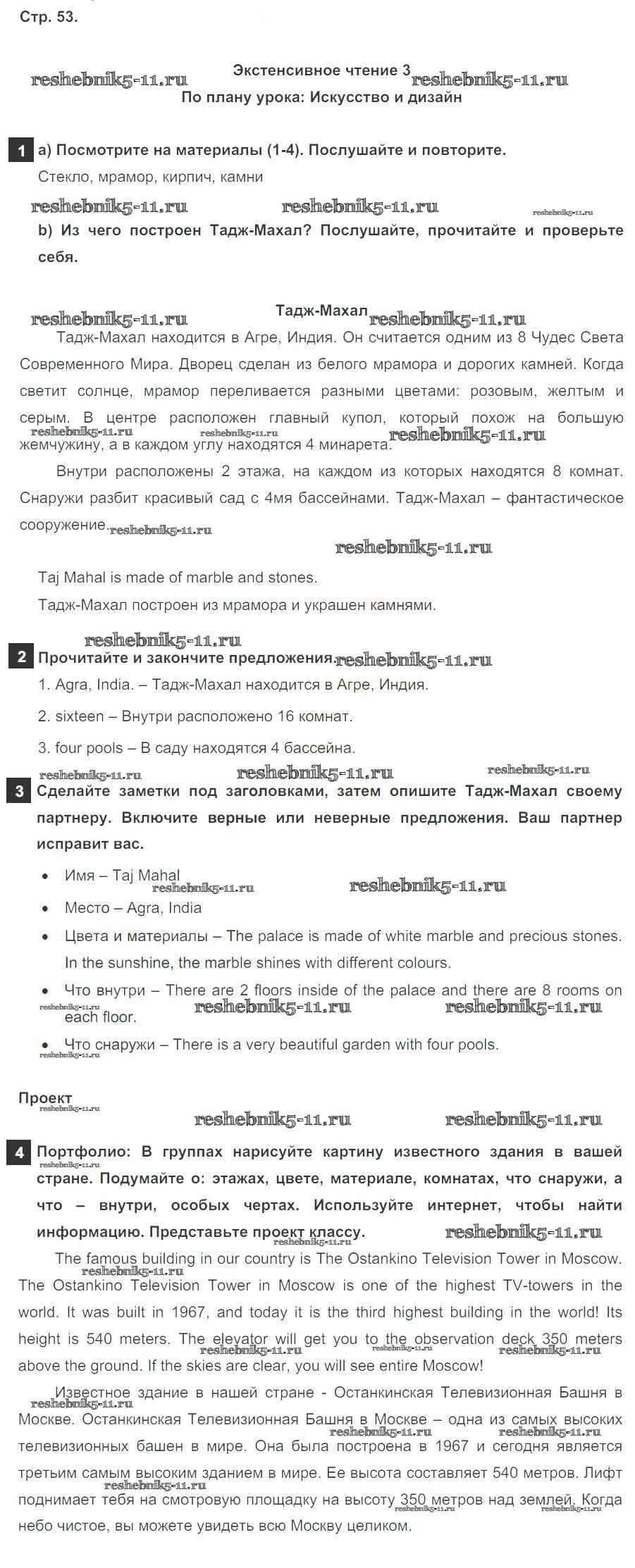 Готовая домашняя работа с ответами по Английскому языку за 5 класс Ваулина, Дули, Подоляко, Эванск Учебник Spotlight Просвещение 2015 ФГОС - Module 3. My home, my castle стр. 53