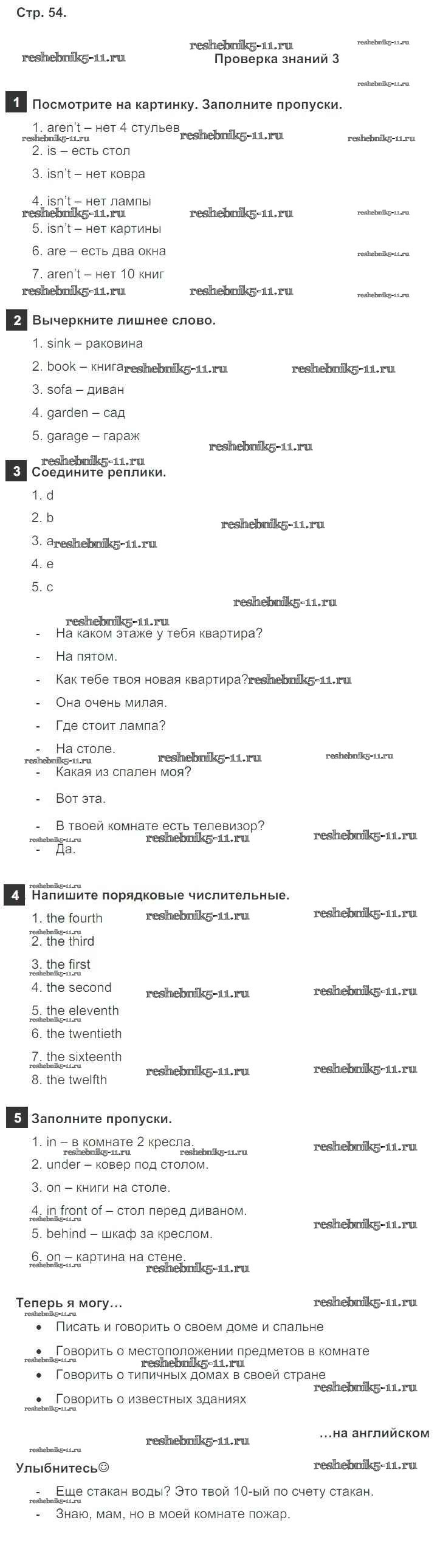Готовая домашняя работа с ответами по Английскому языку за 5 класс Ваулина, Дули, Подоляко, Эванск Учебник Spotlight Просвещение 2015 ФГОС - Module 3. My home, my castle стр. 54