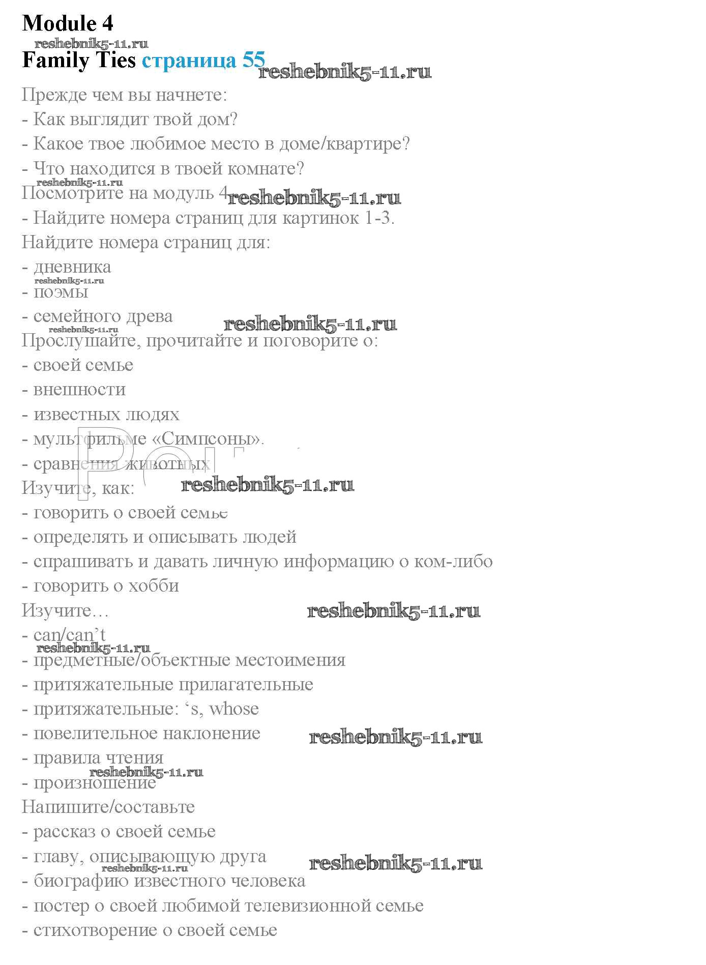 Готовая домашняя работа с ответами по Английскому языку за 5 класс Ваулина, Дули, Подоляко, Эванск Учебник Spotlight Просвещение 2015 ФГОС - Module 4. Family ties стр. 55